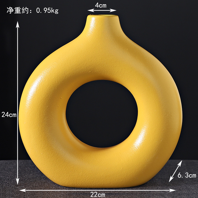 바람 도넛 세라믹 꽃병 도매 B & B 호텔 거실 장식 말린 꽃