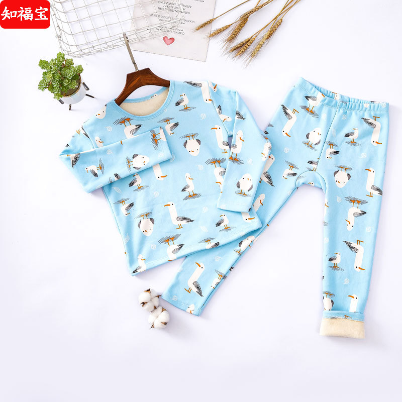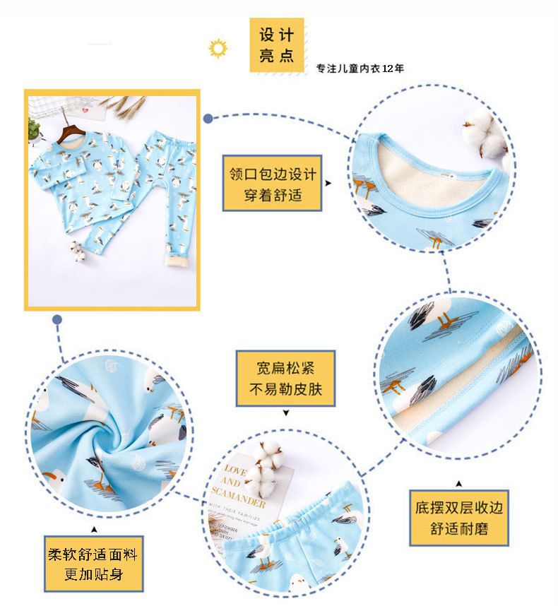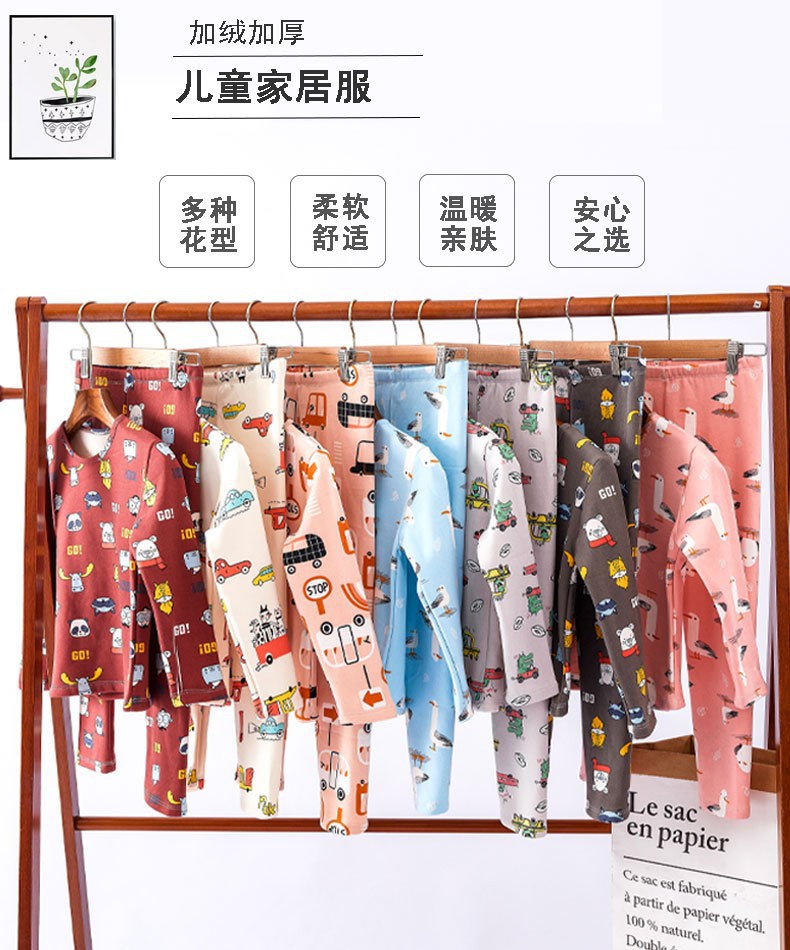 가을과 겨울의 세대의 공장 직접 판매 새로운 기모 두꺼운 어린이 소년 소녀 만화 열 속옷 세트스토어 가기