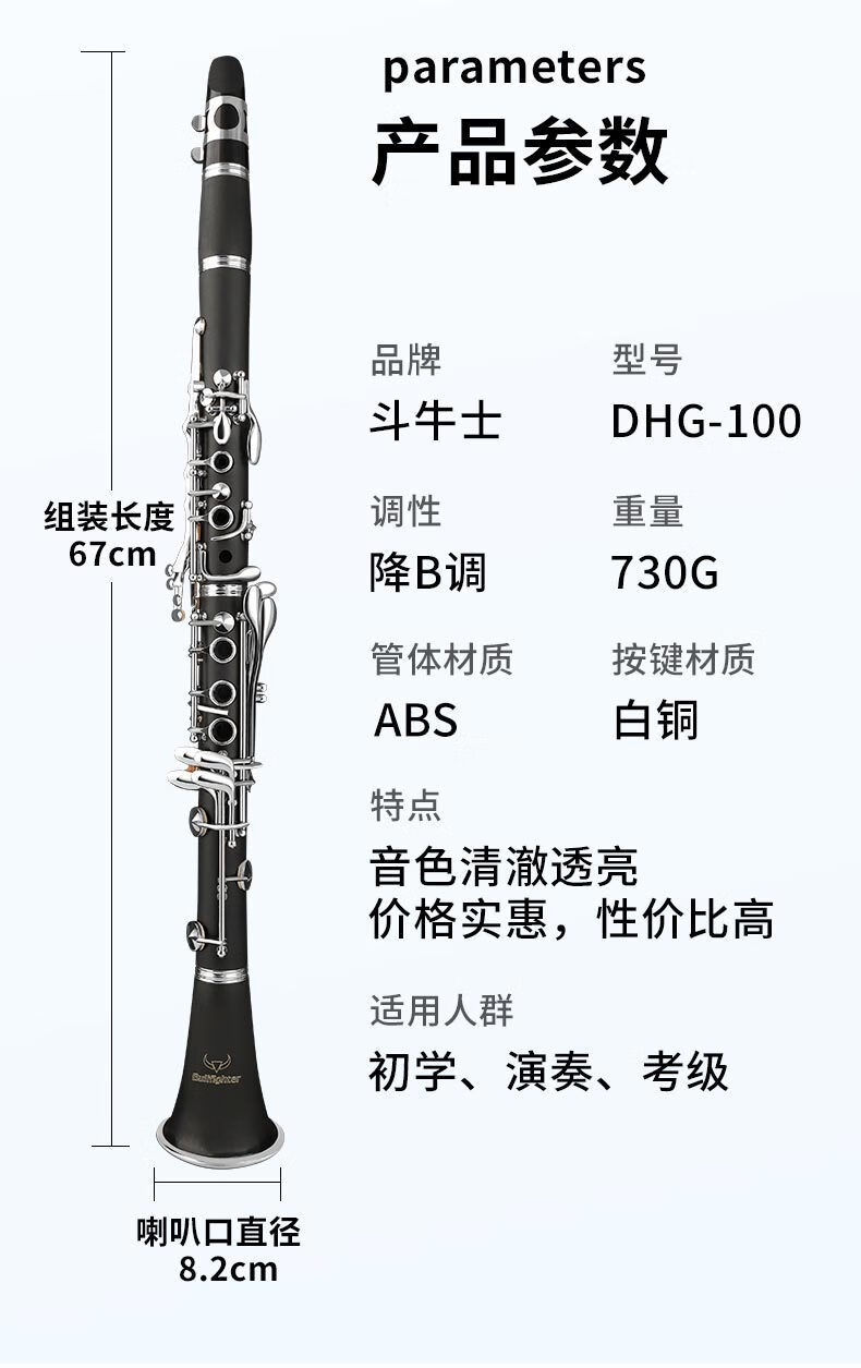 투우 투우사 클라리넷 블랙 관악기 17 키 다운 B 키 초보자 시험 학년 범용스토어 가기