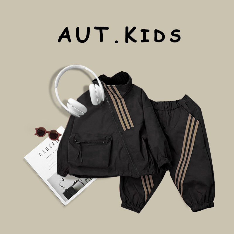 소년 스트라이프 재킷 정장 한국 스타일 가을 스타일 2025 새로운 아기 소년 스포츠 지퍼 재킷 투피스 세트스토어 가기