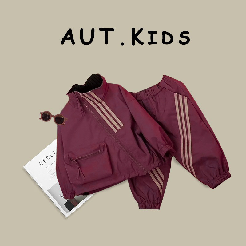 소년 스트라이프 재킷 정장 한국 스타일 가을 스타일 2025 새로운 아기 소년 스포츠 지퍼 재킷 투피스 세트