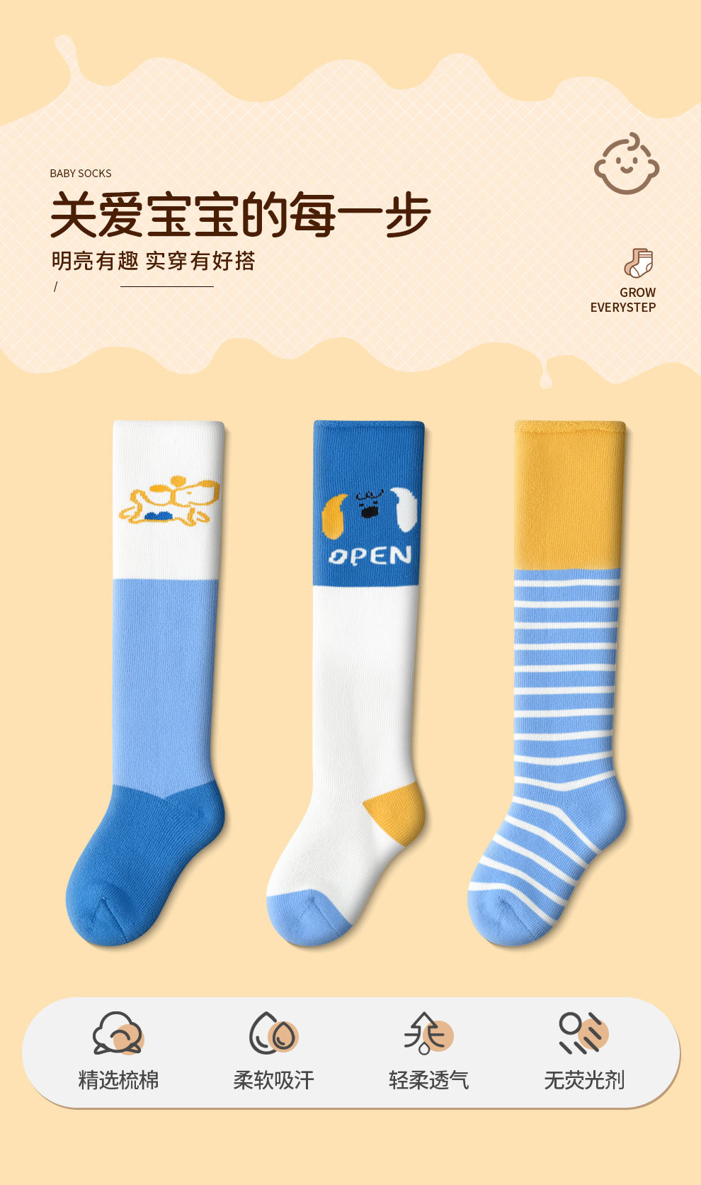 Mu Mo Mo Mo 겨울 두꺼운 아기 스타킹 면 따뜻한 신생아 양말 만화 무릎 위 아기 양말스토어 가기
