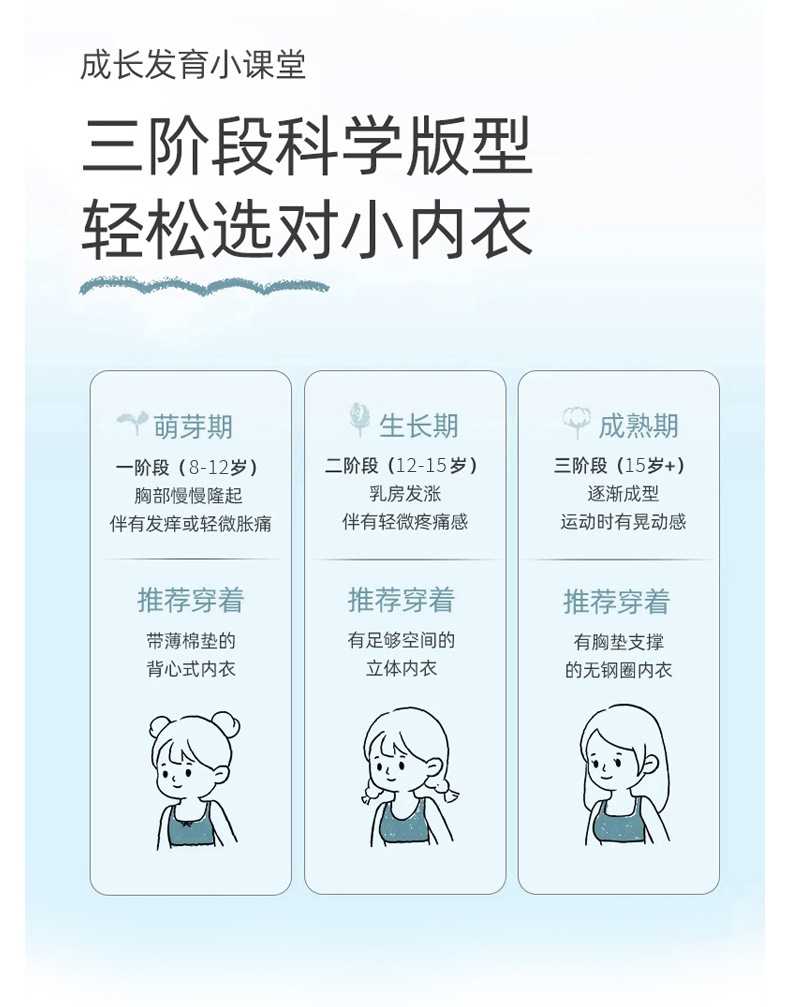 3 단계 학생들을위한 여자 발달 속옷 추적없는 통기성 스포츠 조끼 안티 범프 성장 브래지어스토어 가기