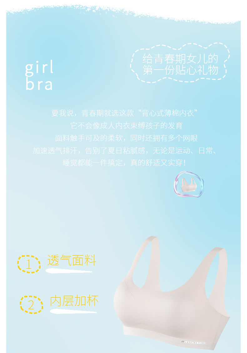 3 단계 학생들을위한 여자 발달 속옷 추적없는 통기성 스포츠 조끼 안티 범프 성장 브래지어