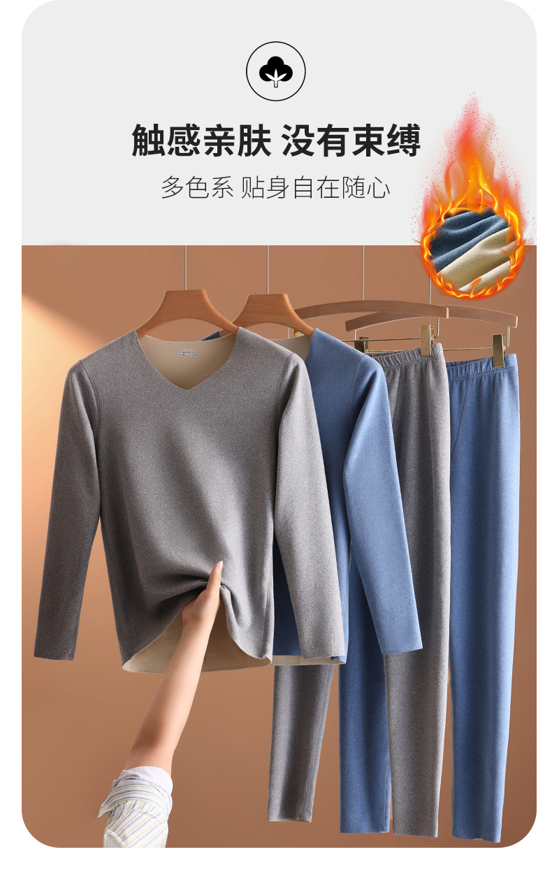 가을과 겨울 남자의 벨벳 열 세트 원활한 난방 기모 두꺼운 기본 열 속옷 플러스 사이즈 가을 옷 가을 바지스토어 가기