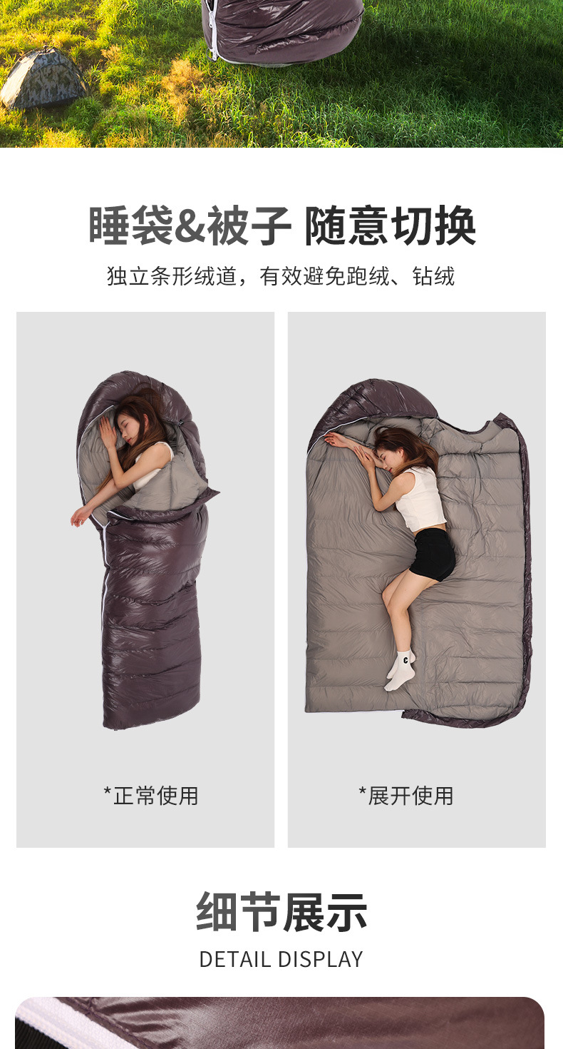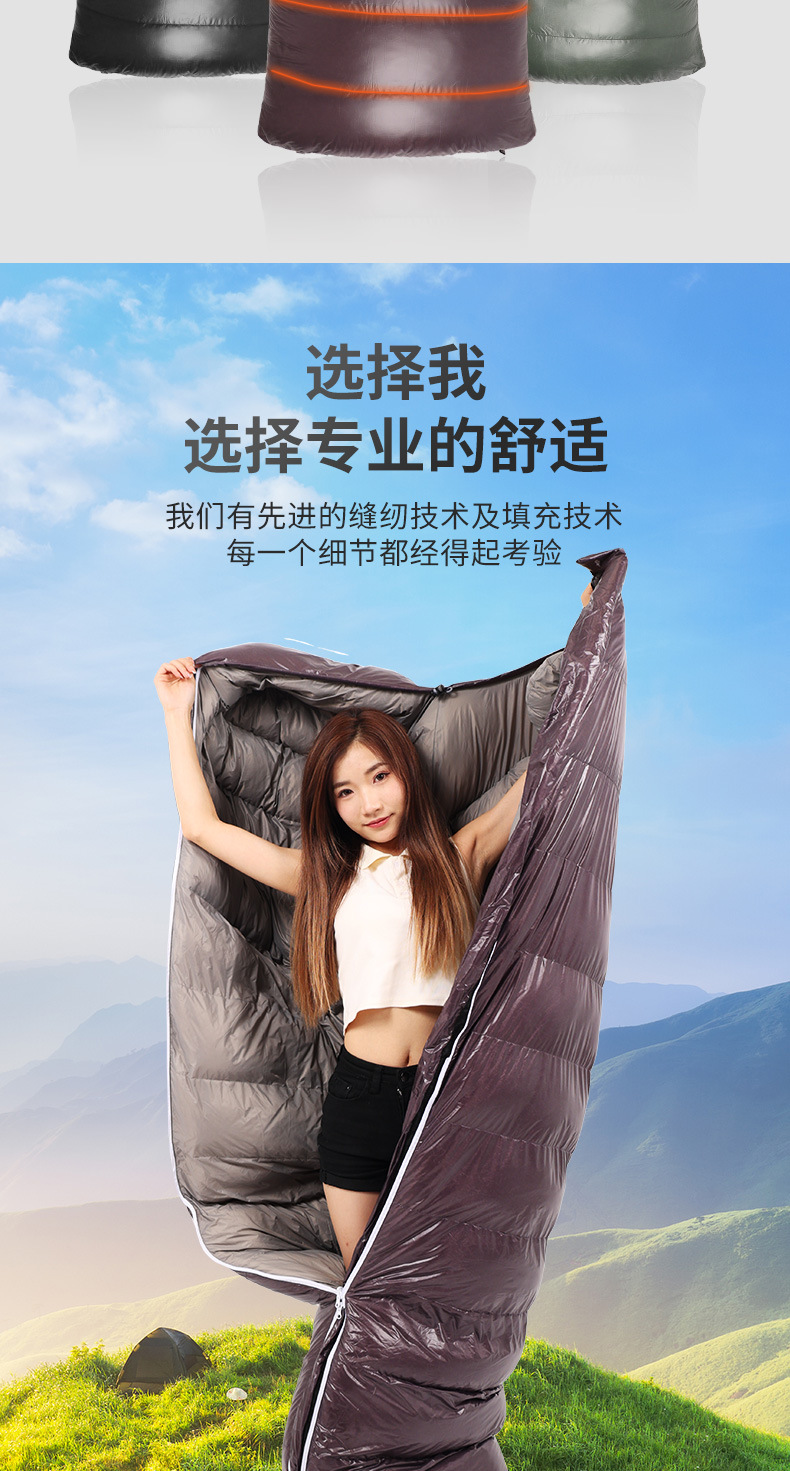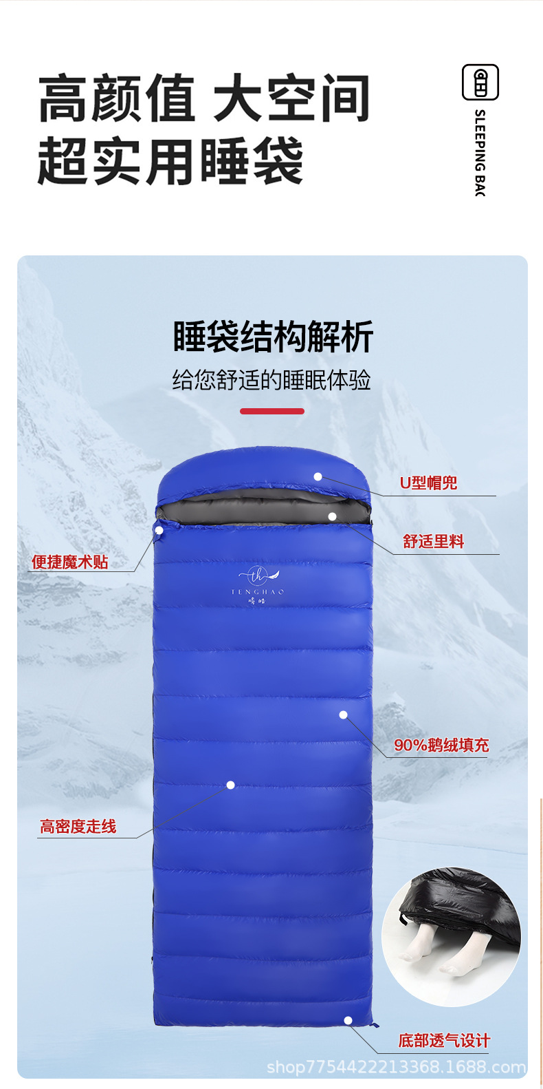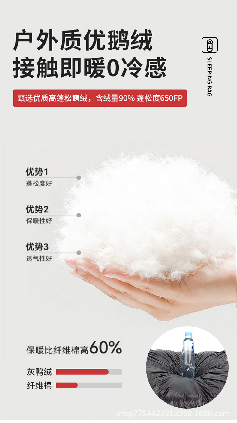 야외 캠핑 여행용 침낭 초경량 보온 봉투형 90% 오리털 사계절 성인 캠핑용 스플라이스 다운 침낭스토어 가기
