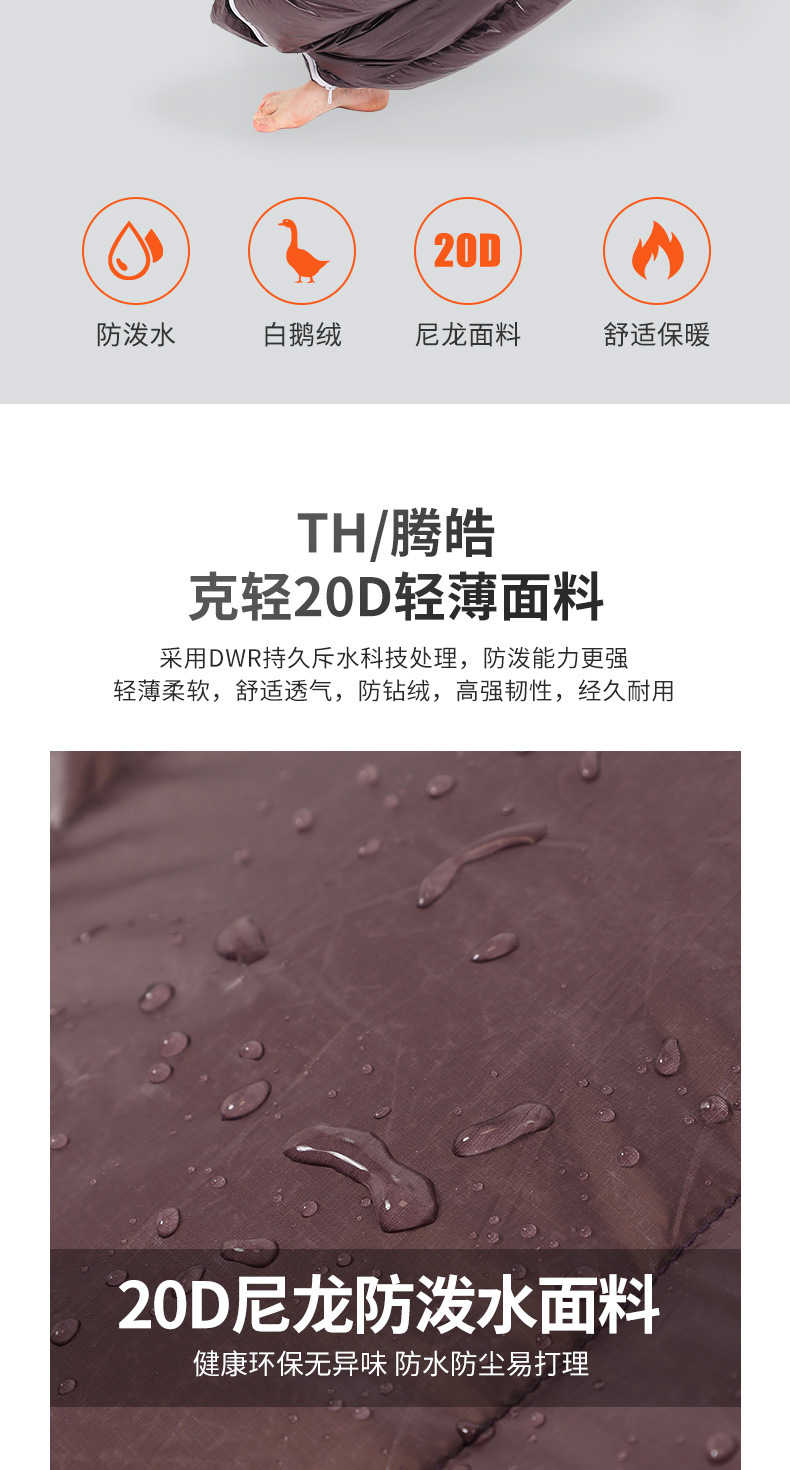 야외 캠핑 여행용 침낭 초경량 보온 봉투형 90% 오리털 사계절 성인 캠핑용 스플라이스 다운 침낭