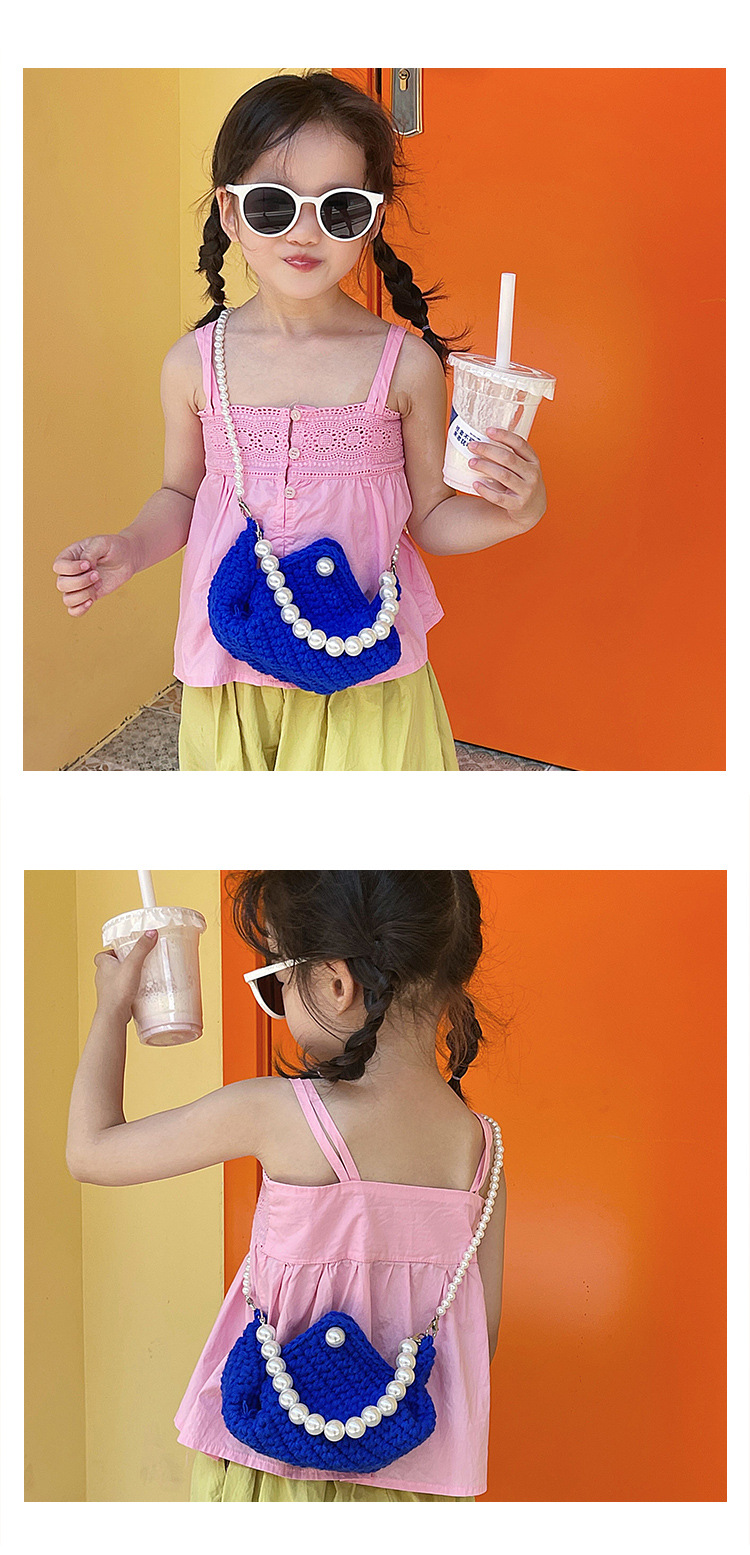 어린이 가방 귀여운 소녀 아기 양모 니트 핸드백 소녀 패션 진주 체인 크로스 바디 백 트렌디스토어 가기