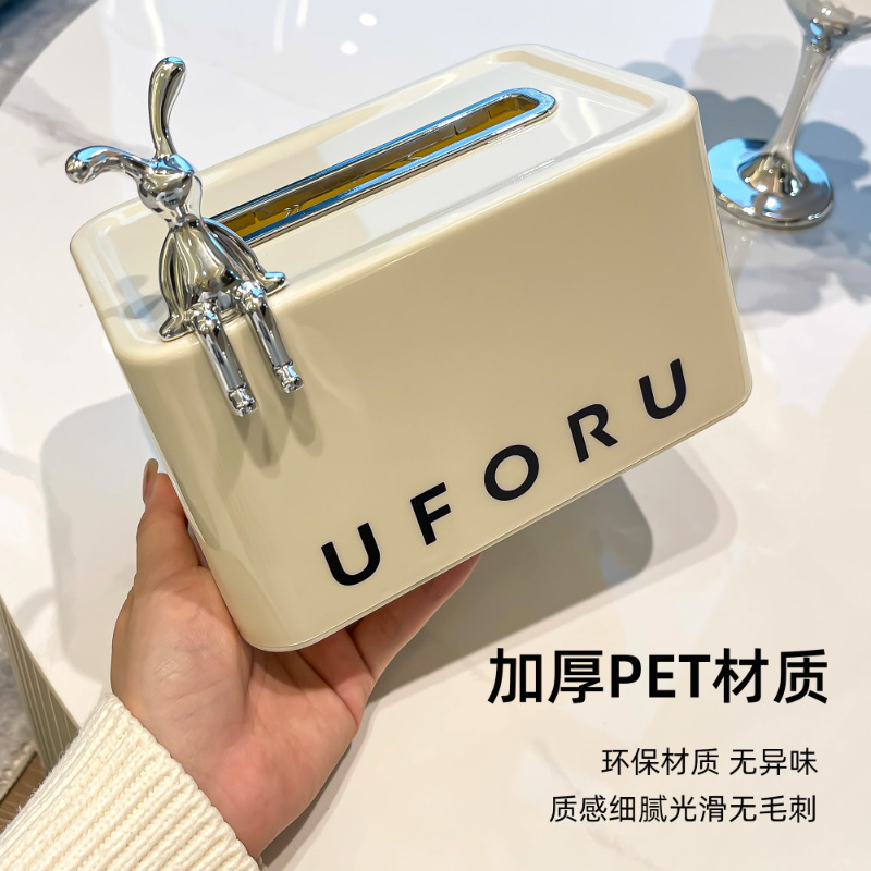 크리 에이 티브 인터넷 연예인 만화 앉아있는 자세 실버 토끼 작은 장식품 현대 빛 럭셔리 자동차 데스크탑 티슈 상자 장식
