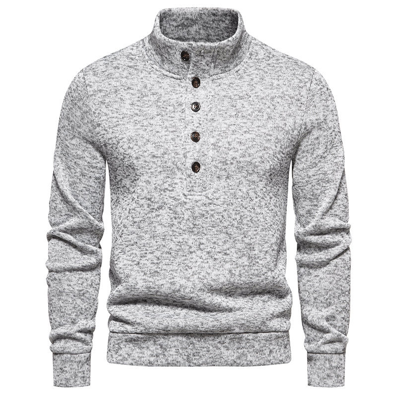2023 대외 무역 가을과 겨울 새로운 남성 터틀넥 버튼 스웨터 단색 유럽 사이즈 캐주얼 스웨터 단색 기본 셔츠