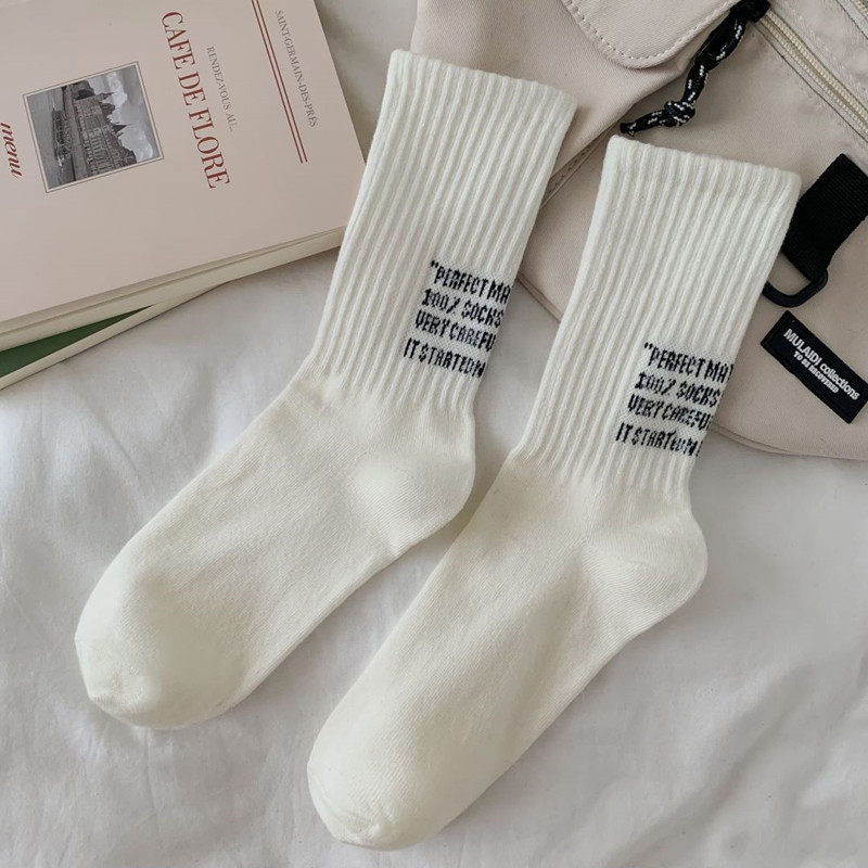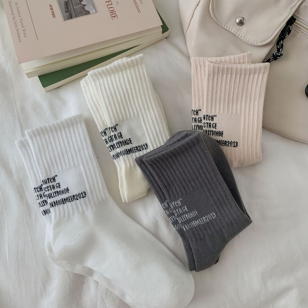 남성용 흰색 양말 가을과 겨울 힐 편지 긴 튜브 스포츠 양말 남성과 여성의 커플 중간 튜브 유행 양말 면 양말 스택 양말스토어 가기