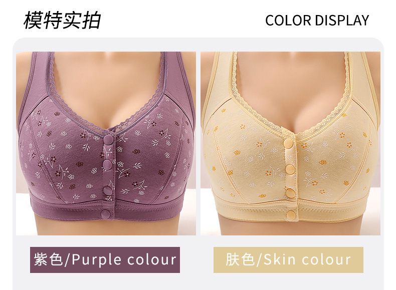 새로운 중년 및 노인 어머니 속옷 수집가 우유 얇은 컵 통기성 없음 스틸 링 전면 개방 버클 플러스 사이즈 속옷 브래지어