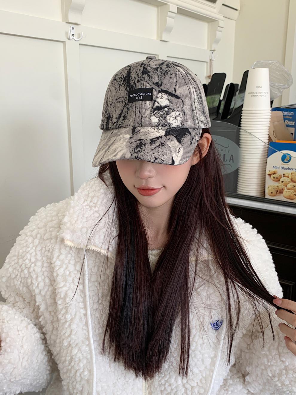 모자 여자의 가을과 겨울 새로운 독특한 타이 다이 낙서 모자 큰 머리 둘레 트렌디 브랜드 얼굴 남성용 작은 야구 모자스토어 가기