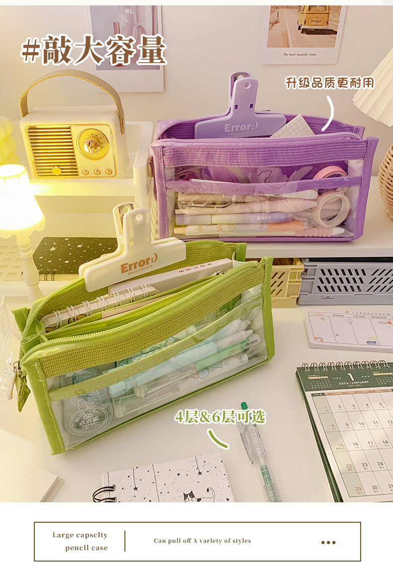 대용량 고등학생 연필 가방 투명 연필 가방 간단한 일본 문구 가방 초등학생 연필 상자 연필 가방