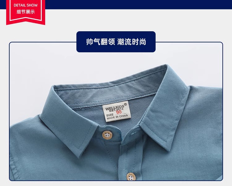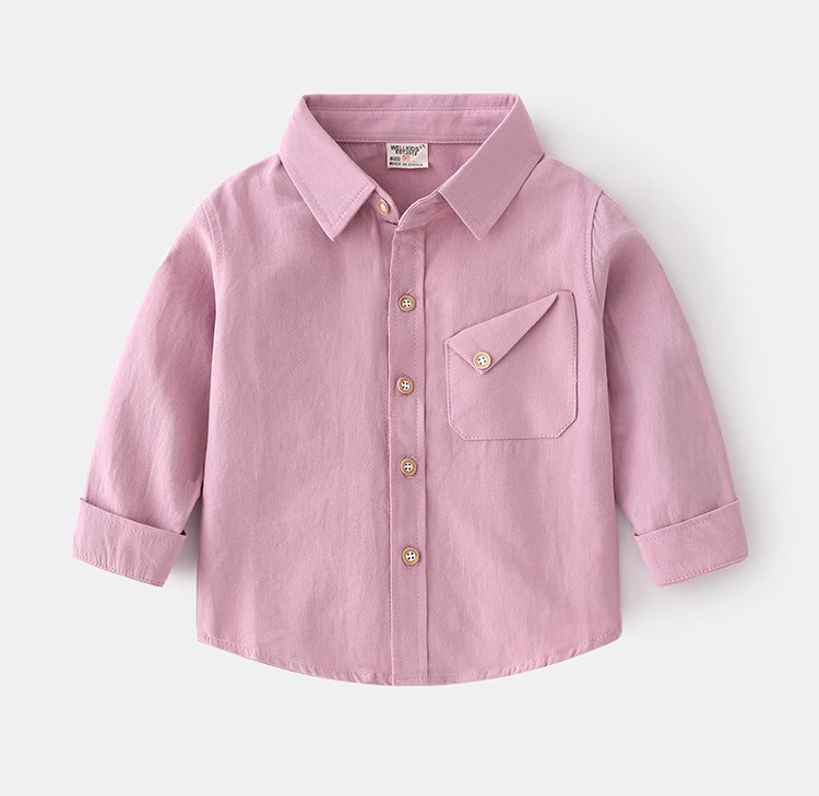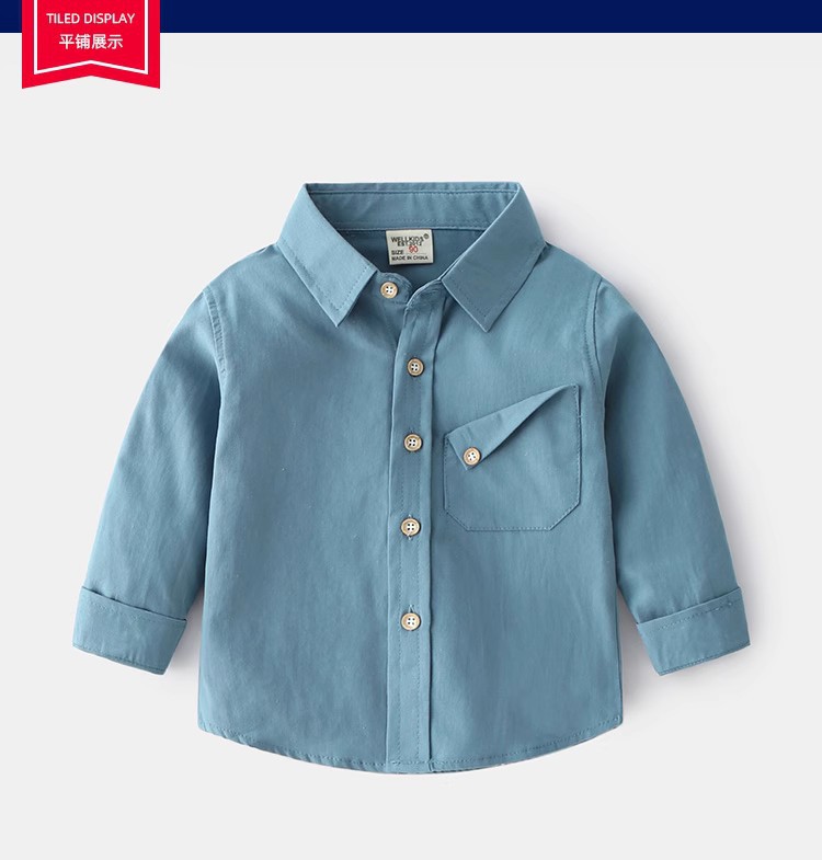 소년 단색 면 셔츠 가을 새로운 2023 심플 캐주얼 모든 경기 포켓 긴 소매 옷깃 탑 재고