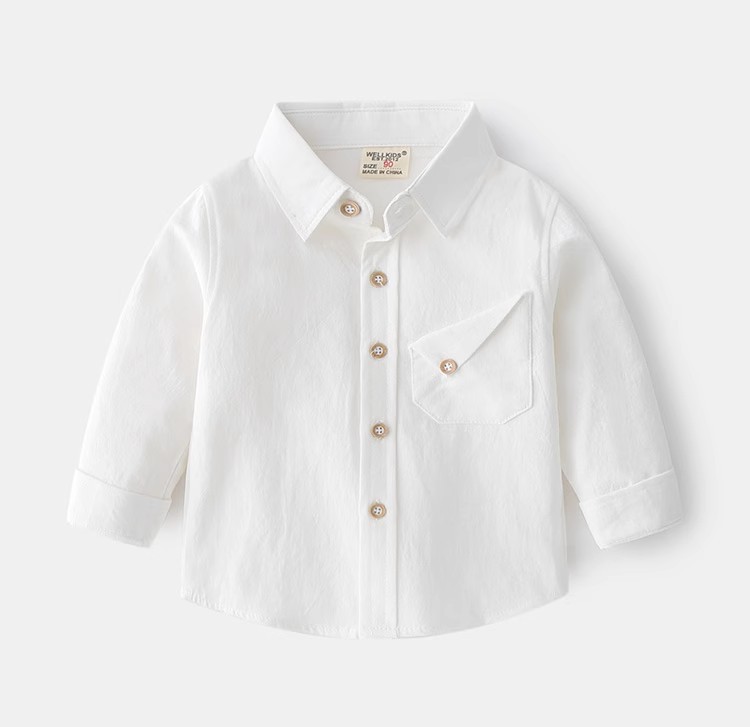 소년 단색 면 셔츠 가을 새로운 2023 심플 캐주얼 모든 경기 포켓 긴 소매 옷깃 탑 재고스토어 가기