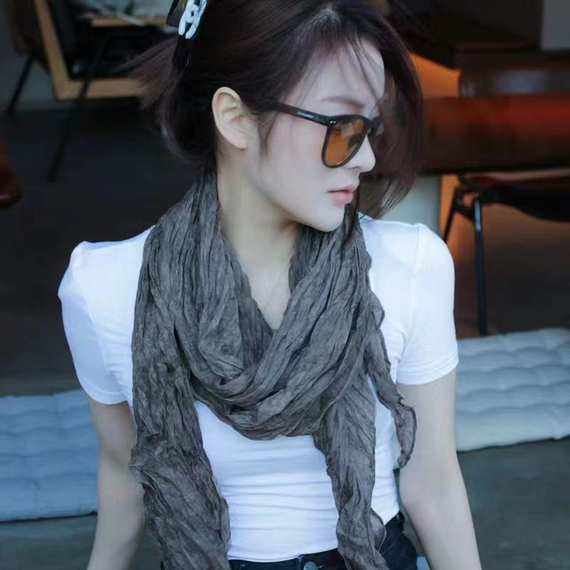 봄과 가을 퓨어 스카프 여성용 이중 사용 주름 긴 한국 스타일 봄과 가을 모든 매치 얇은 장식 다기능 스카프스토어 가기