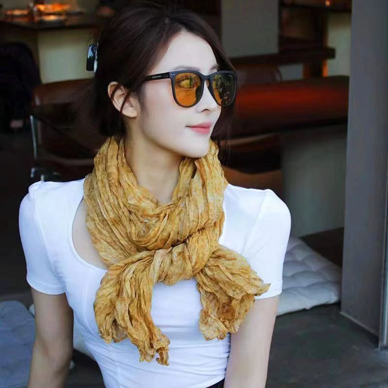 봄과 가을 퓨어 스카프 여성용 이중 사용 주름 긴 한국 스타일 봄과 가을 모든 매치 얇은 장식 다기능 스카프