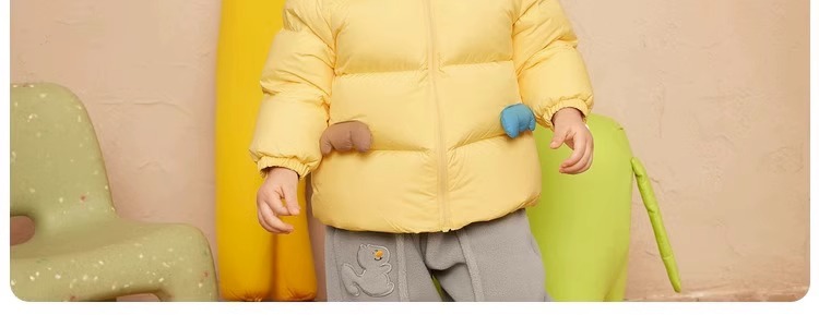 90 벨벳 대비 색상 아기 아동 의류 다운 재킷 소년 겨울 소녀 짧은 재킷 2023 새로운 아기스토어 가기