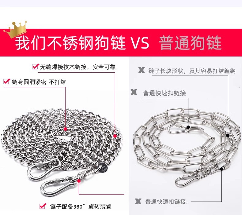 대형견, 중형견, 소형견용 정통 스테인레스 애견체인, 쇠체인목걸이, 애견목줄, 물림방지 불전 애견체인