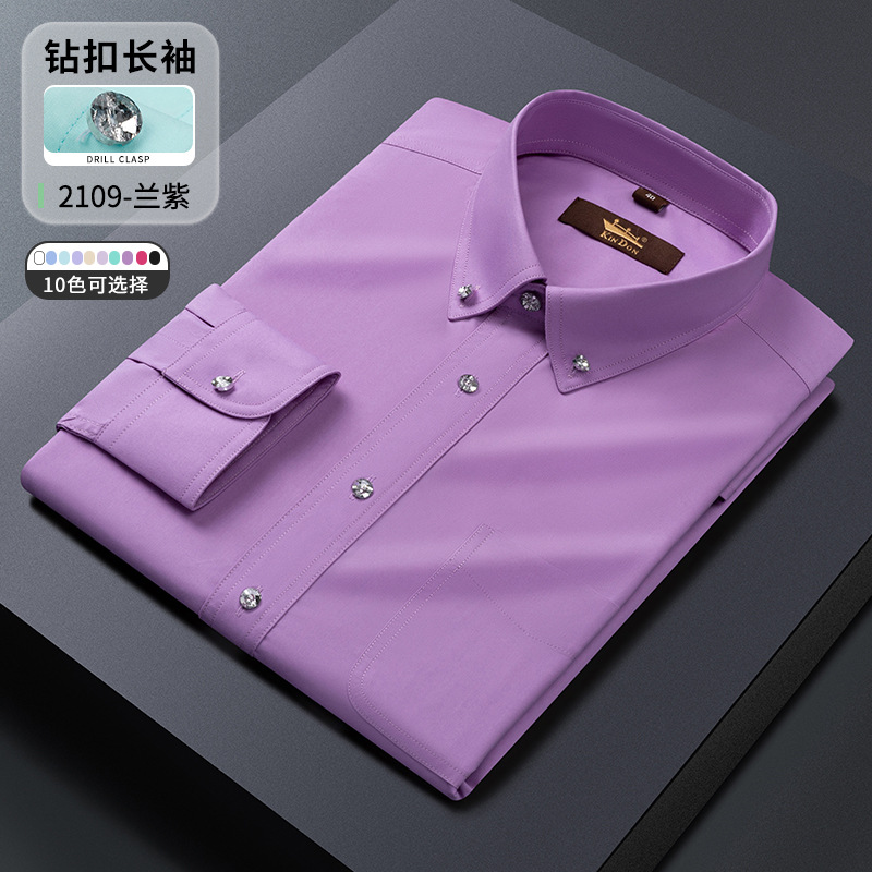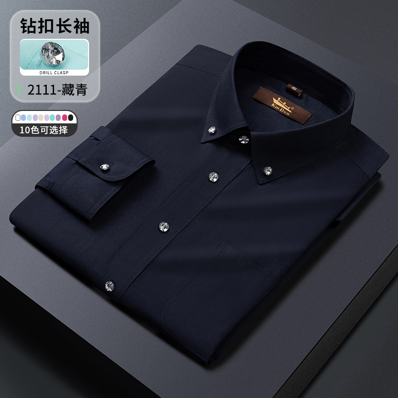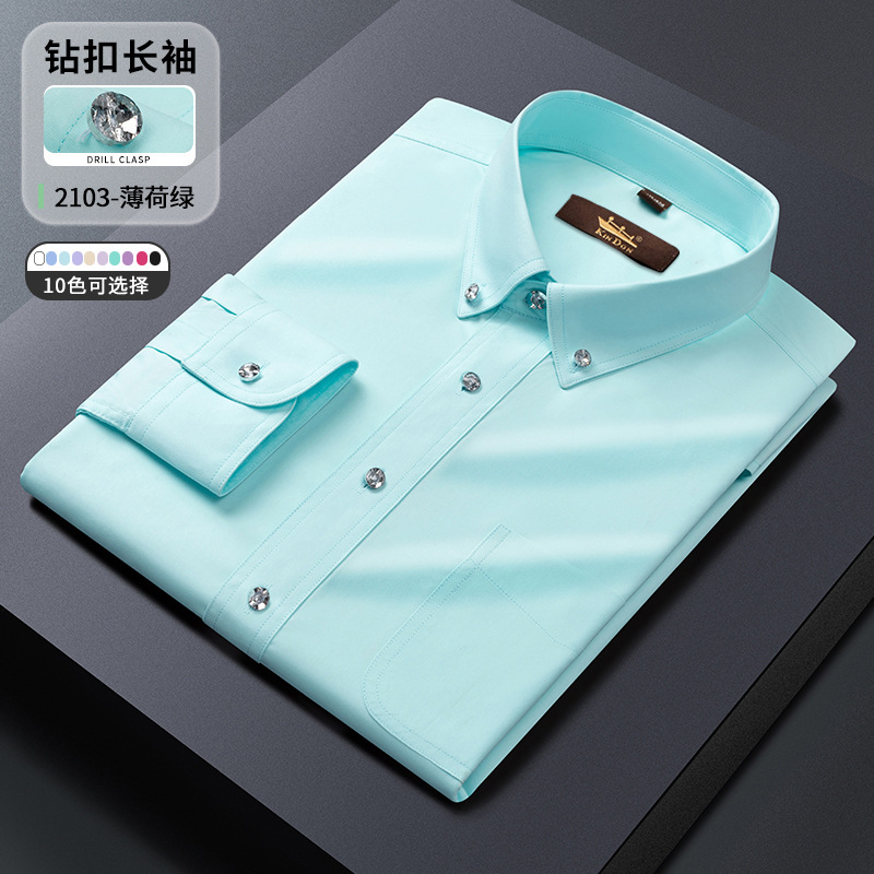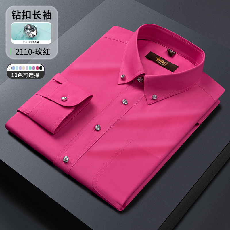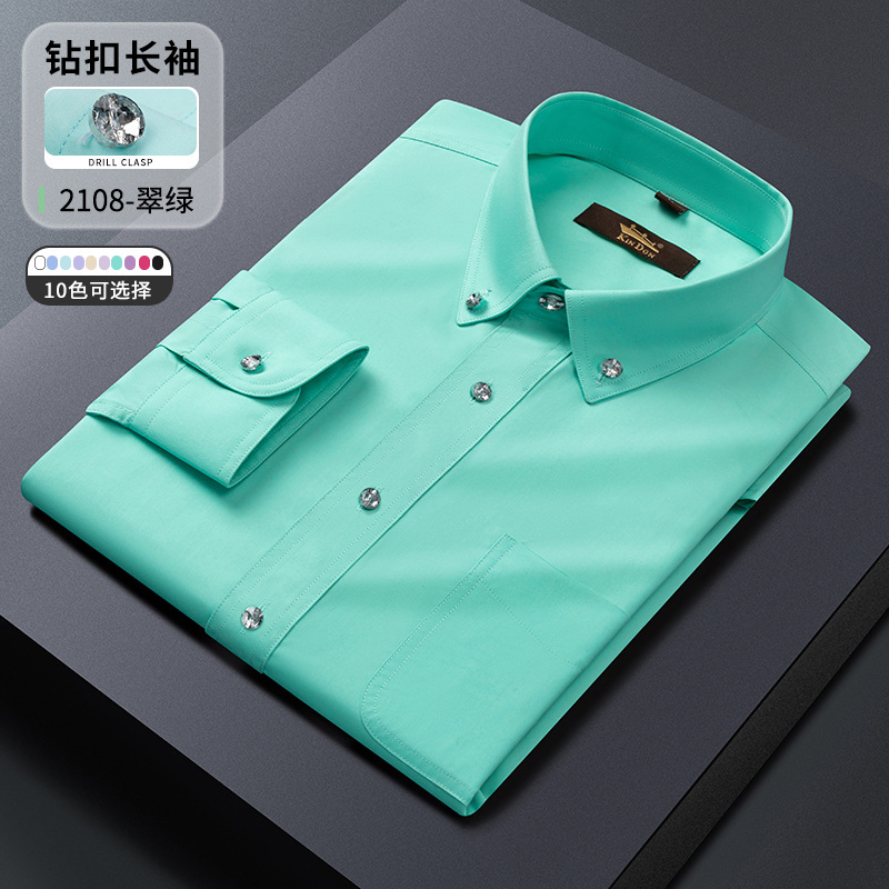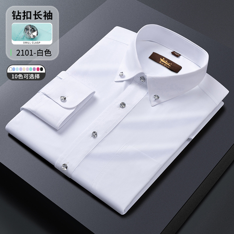 진둔 봄 가을 남성용 긴팔 흰색 셔츠 비즈니스 슬림핏 크리스탈 버튼 손쉬운 관리 웨딩 셔츠 툴링 세련된 셔츠스토어 가기