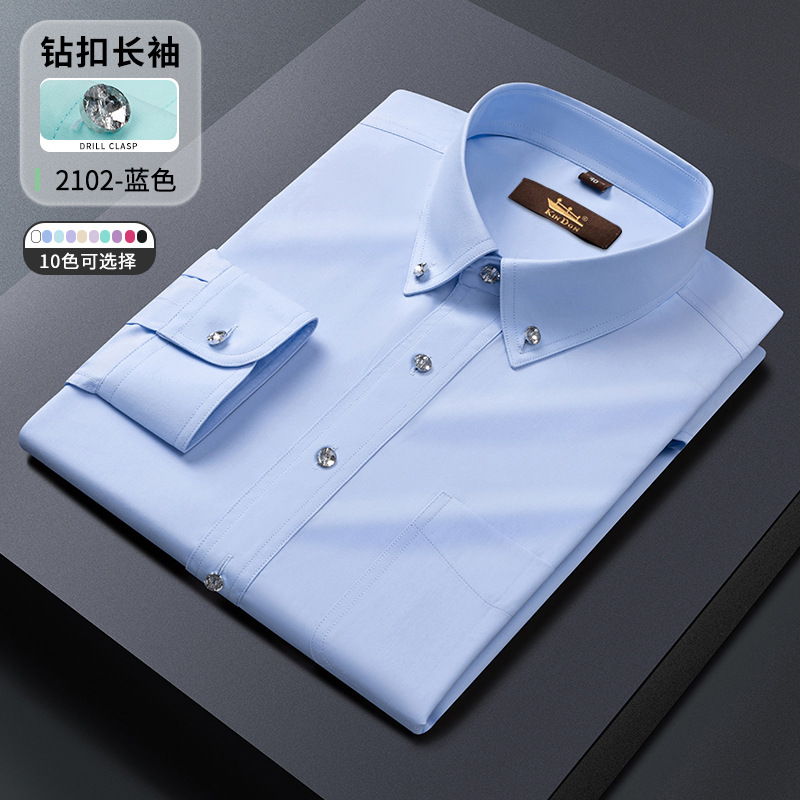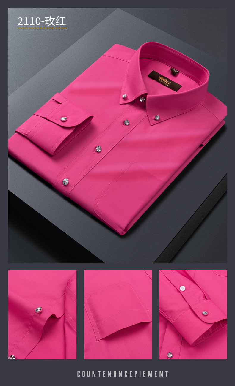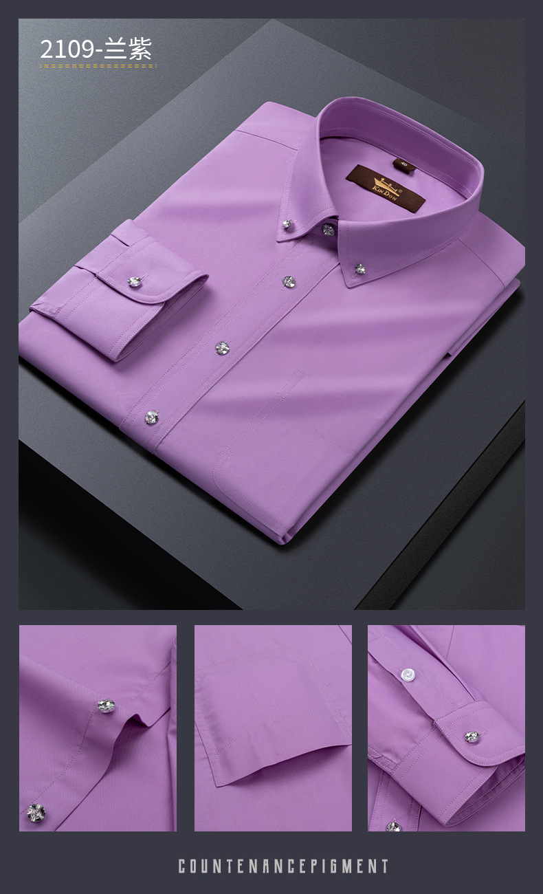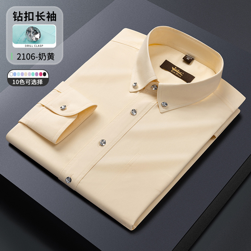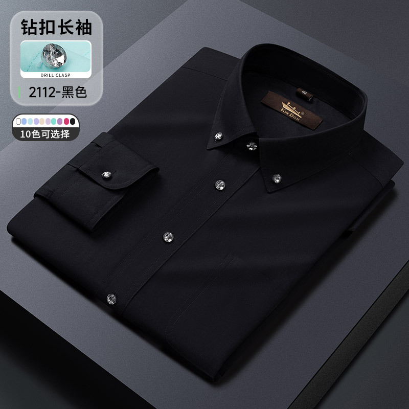 진둔 봄 가을 남성용 긴팔 흰색 셔츠 비즈니스 슬림핏 크리스탈 버튼 손쉬운 관리 웨딩 셔츠 툴링 세련된 셔츠스토어 가기