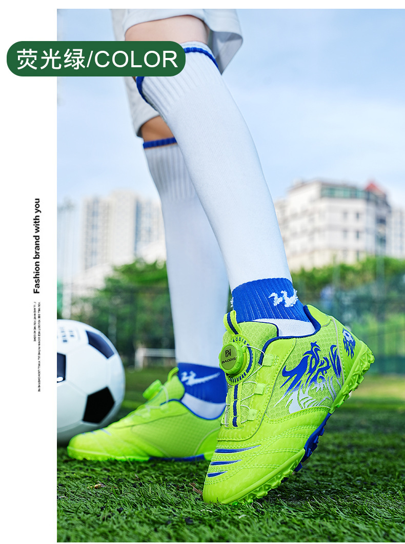 초등 및 중등 학생을위한 교차 테두리 회전 버튼 축구화 짓 눌린 손톱 소년과 소녀를 위해 통기성 새로운 어린이 축구 잔디 훈련 신발