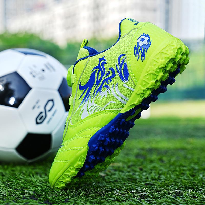 초등 및 중등 학생을위한 교차 테두리 회전 버튼 축구화 짓 눌린 손톱 소년과 소녀를 위해 통기성 새로운 어린이 축구 잔디 훈련 신발스토어 가기