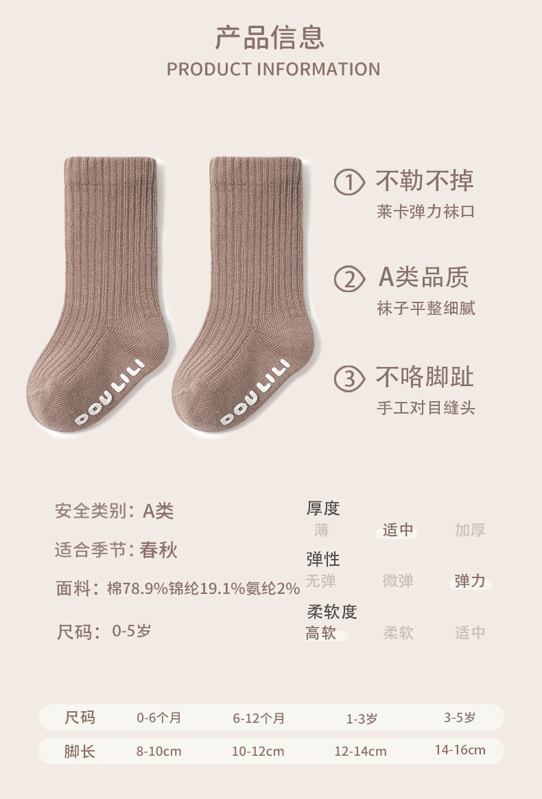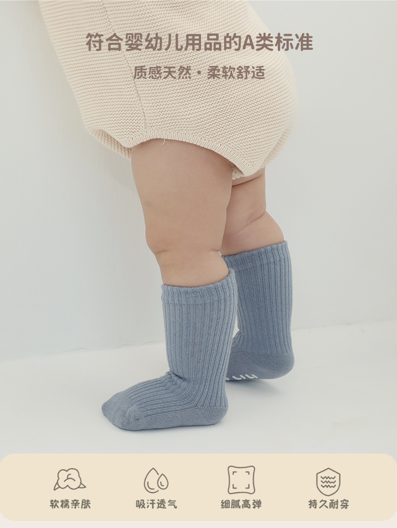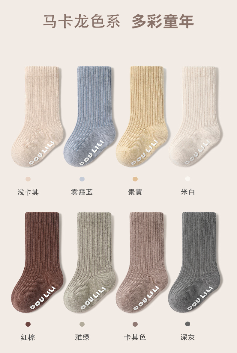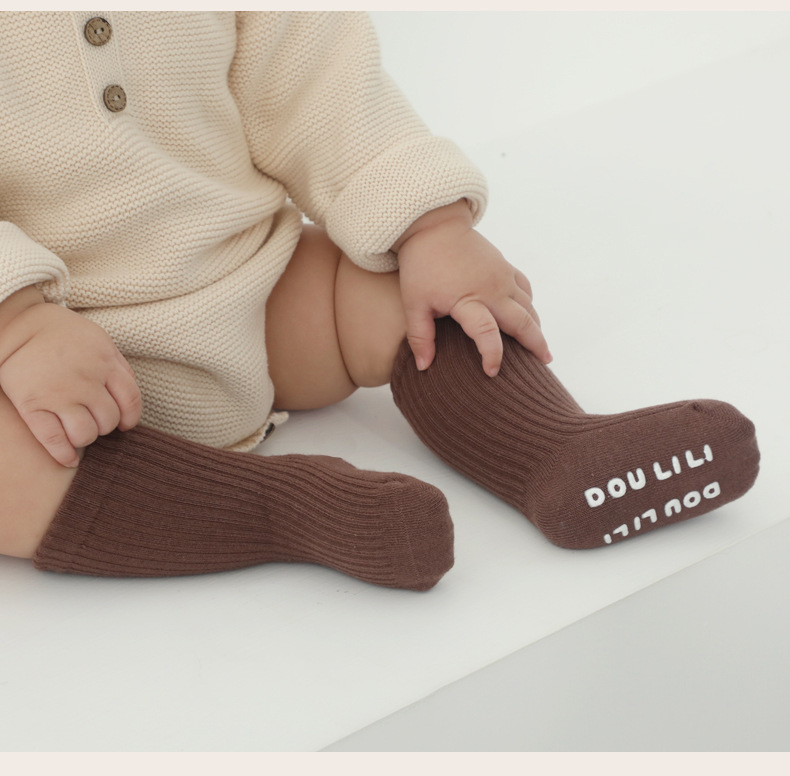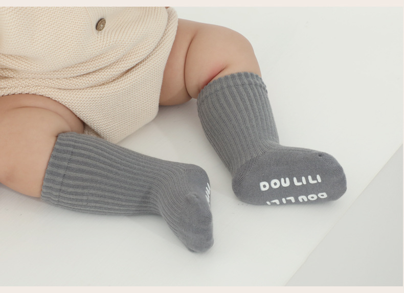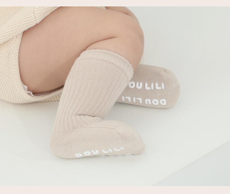 소년 소녀 중형 및 대형 아동면 양말에 어린이 양말 봄 가을과 겨울 미끄럼 방지 단색 일반 아기 양말스토어 가기