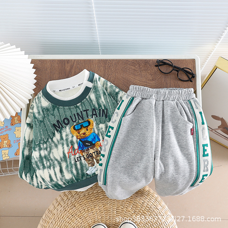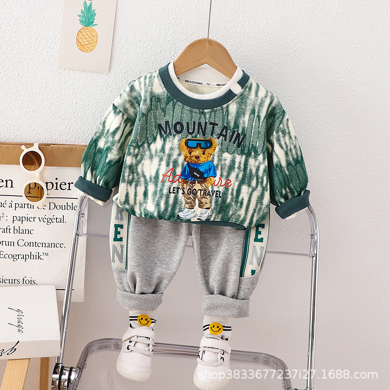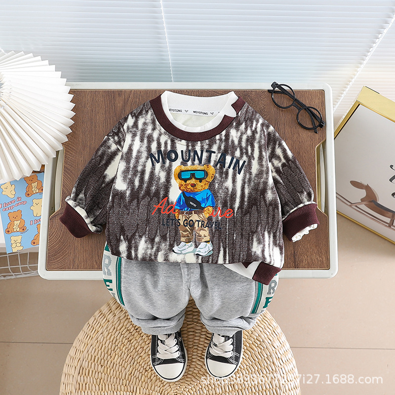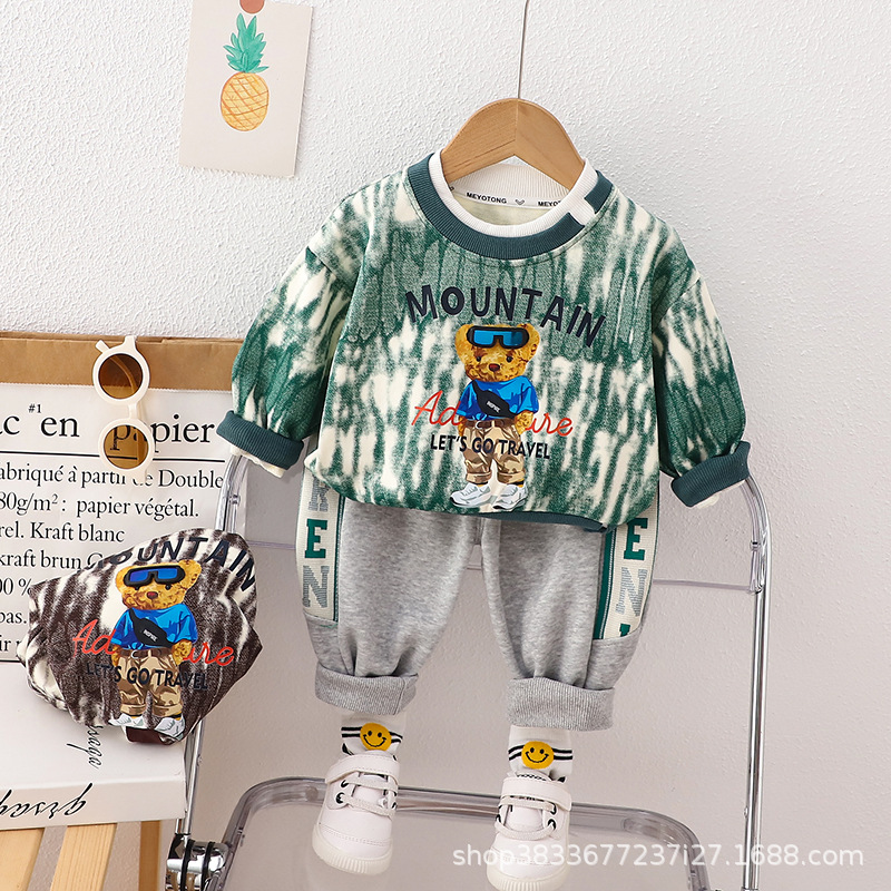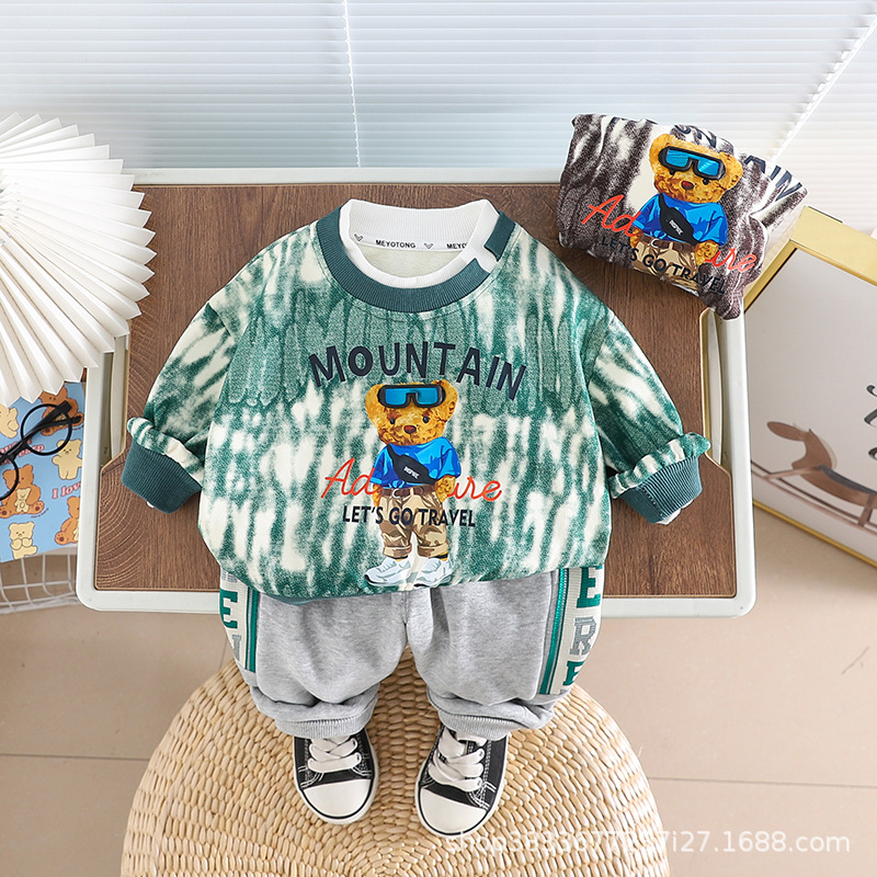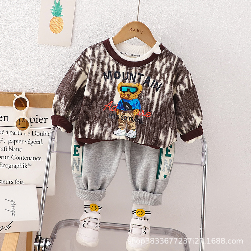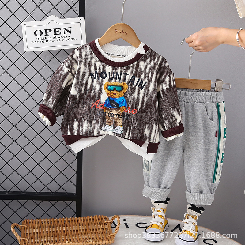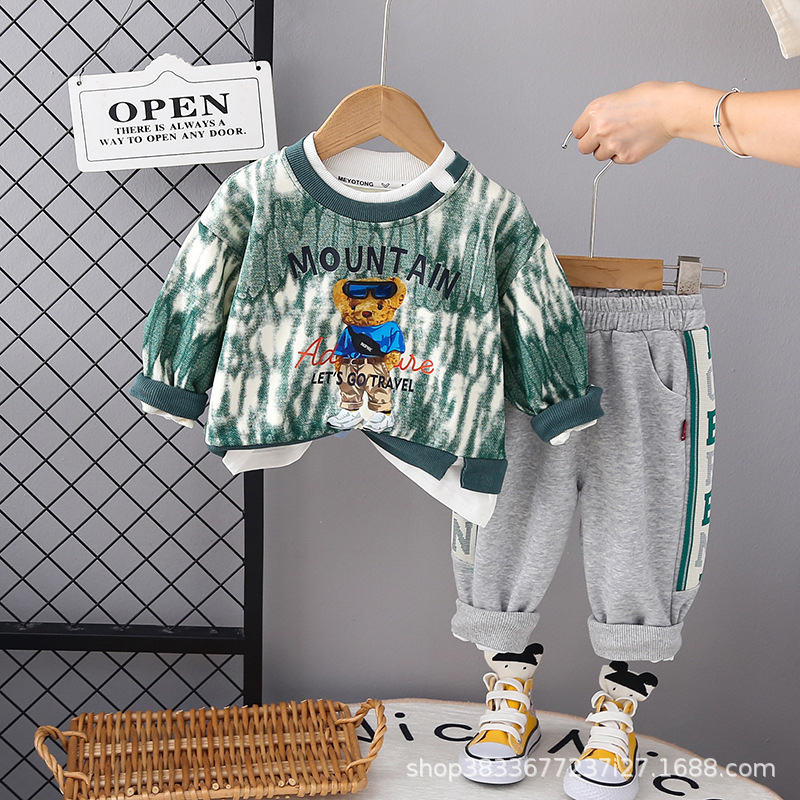 소년 가을 세트 2023 새로운 아기 옷 조수 아기 가을 안경 곰 넥타이 염색 2 종 도매스토어 가기