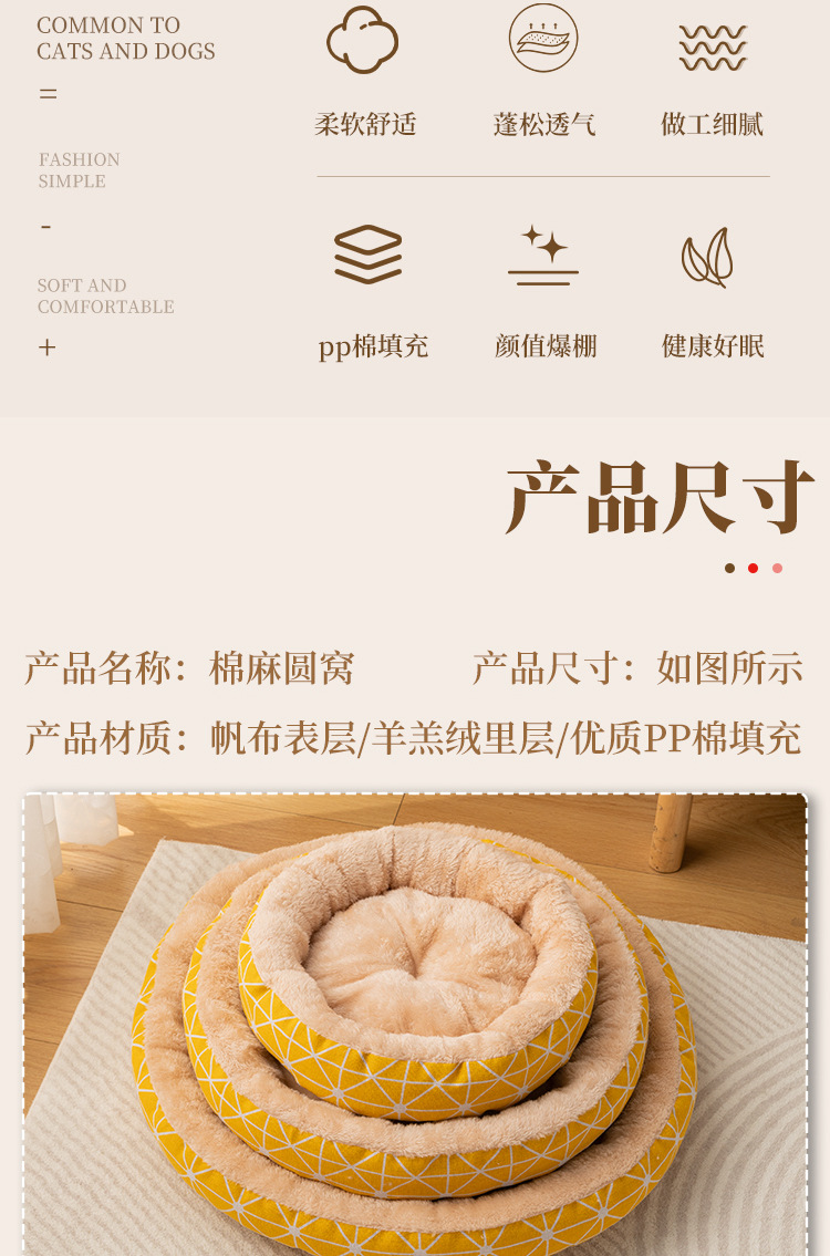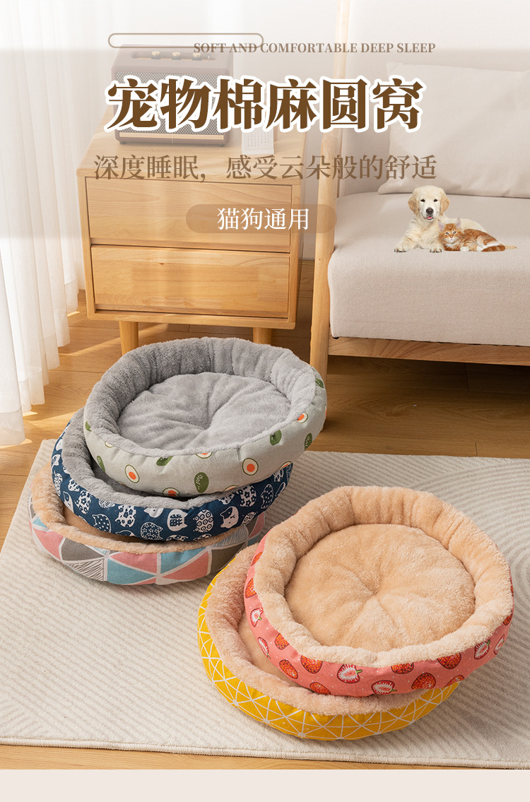 사계절 사용 가능한 면과 린넨 고양이 개집, 애완견 침대, 개 개집 매트, 둥근 개집, 겨울 따뜻한 애완 동물 개집, 국경 간스토어 가기