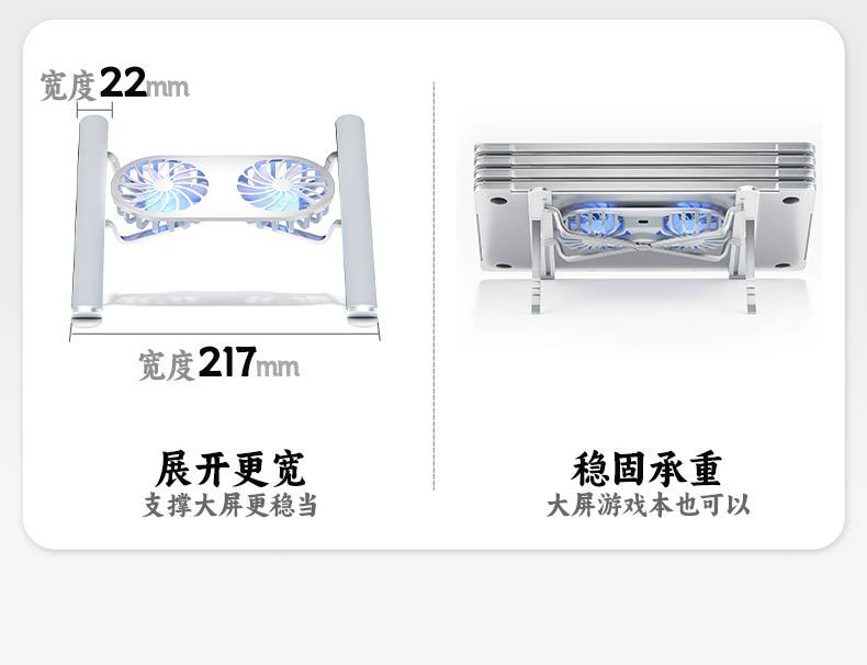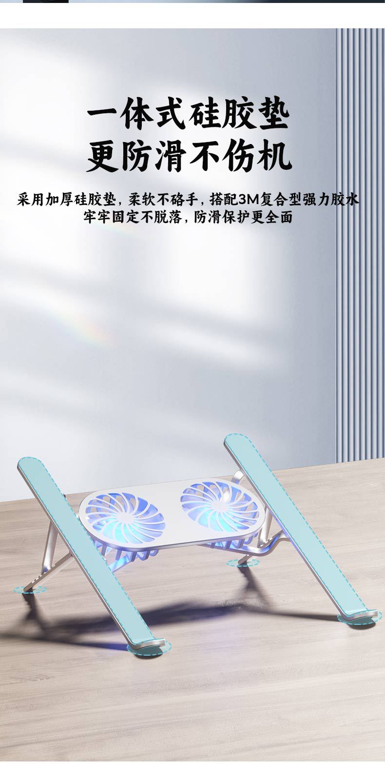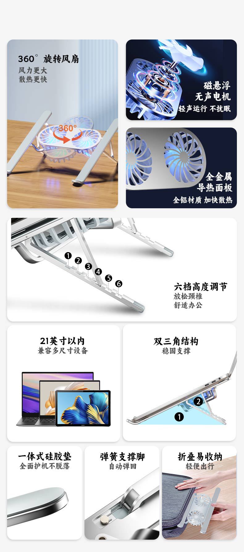 • 알루미늄 합금 컴퓨터 브래킷-[팬 및 조명으로 720 ° 회전 방열]-실버