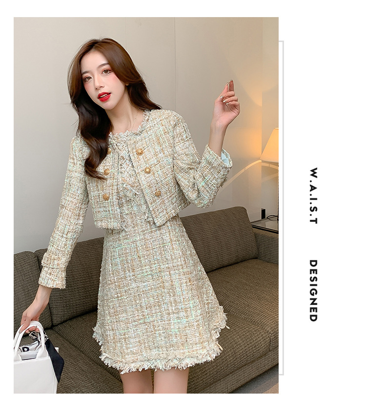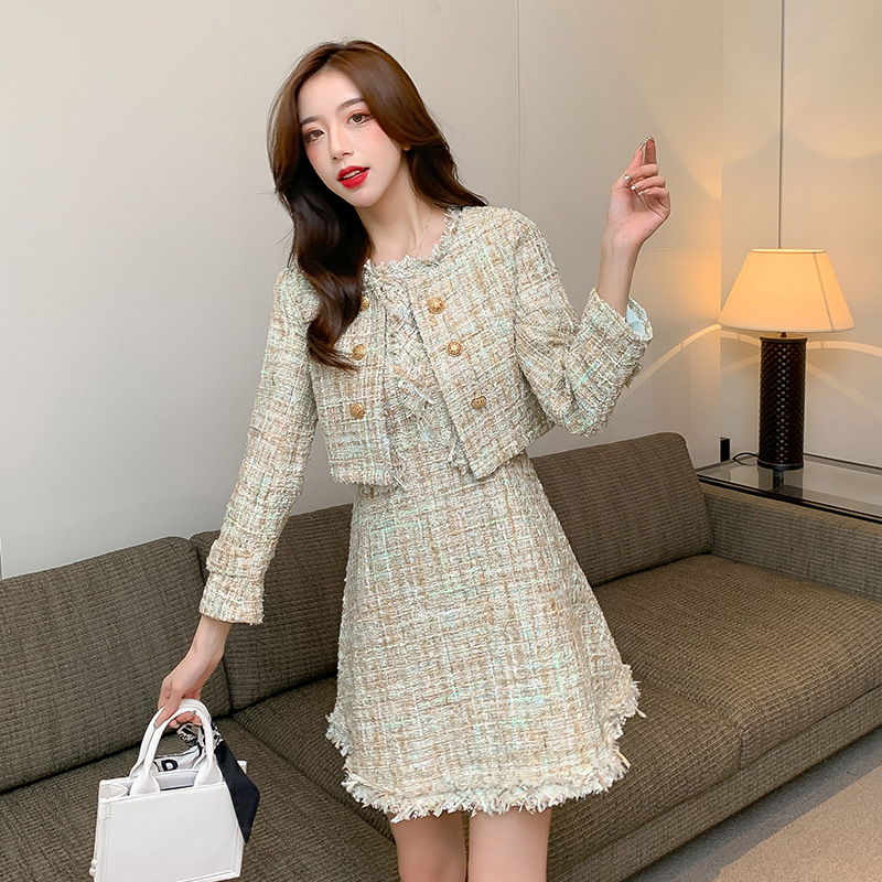 Xiaoxiangfeng 패션 정장 2024 봄 새로운 스타일 허리 슬리밍 재킷 기질 슬림 조끼 스커트 여성을위한 투피스 세트스토어 가기