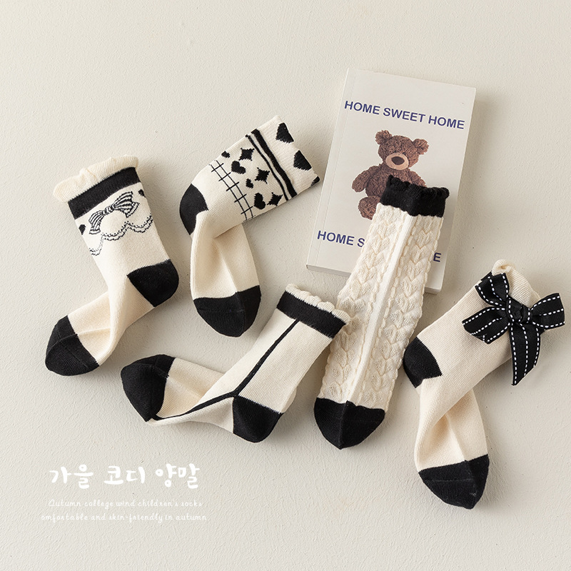 어린이 양말 가을 겨울 한국 스타일 트렌디 양말 봄 가을 통기성 중간 길이 면 양말 꽃무늬 여자 아기 통기성 공주 양말스토어 가기