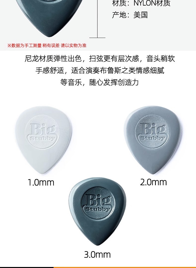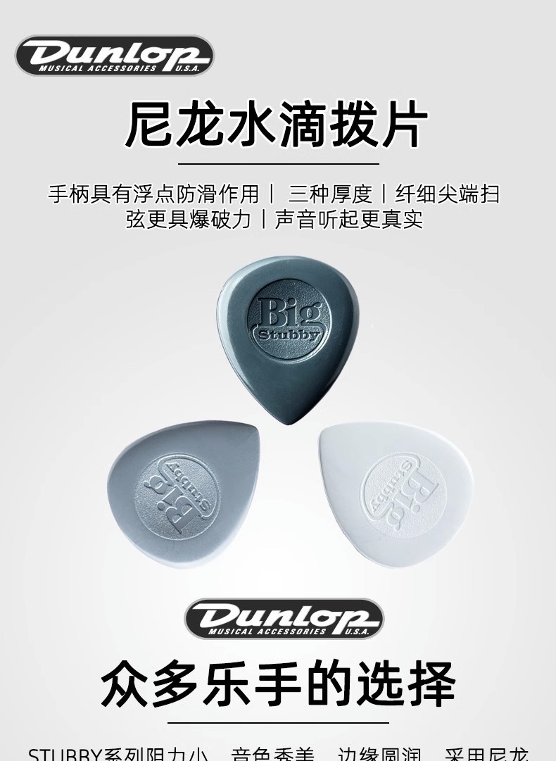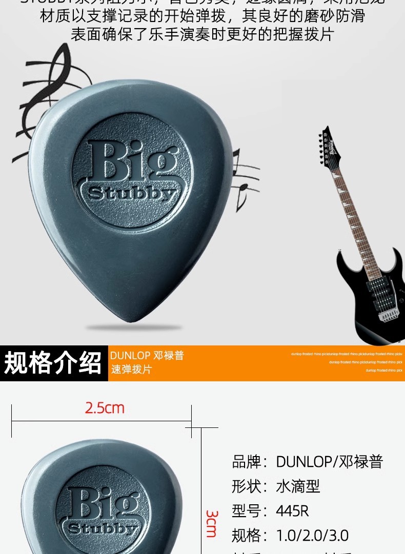 Dunlop Dunlop Stubby445R 나일론 대형 워터 드롭 Bakelite 포크 기타 픽 1.0-3.0스토어 가기