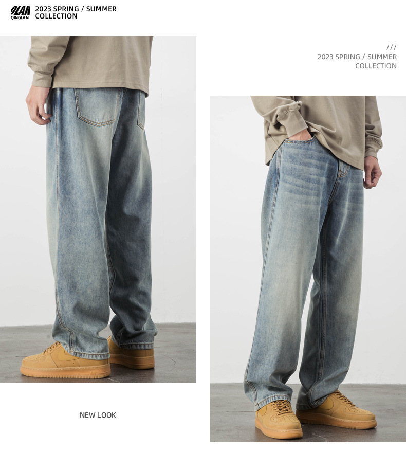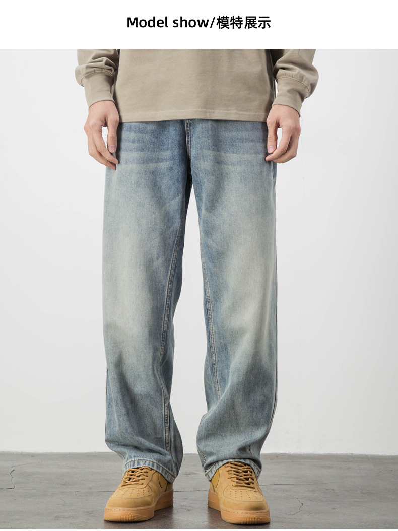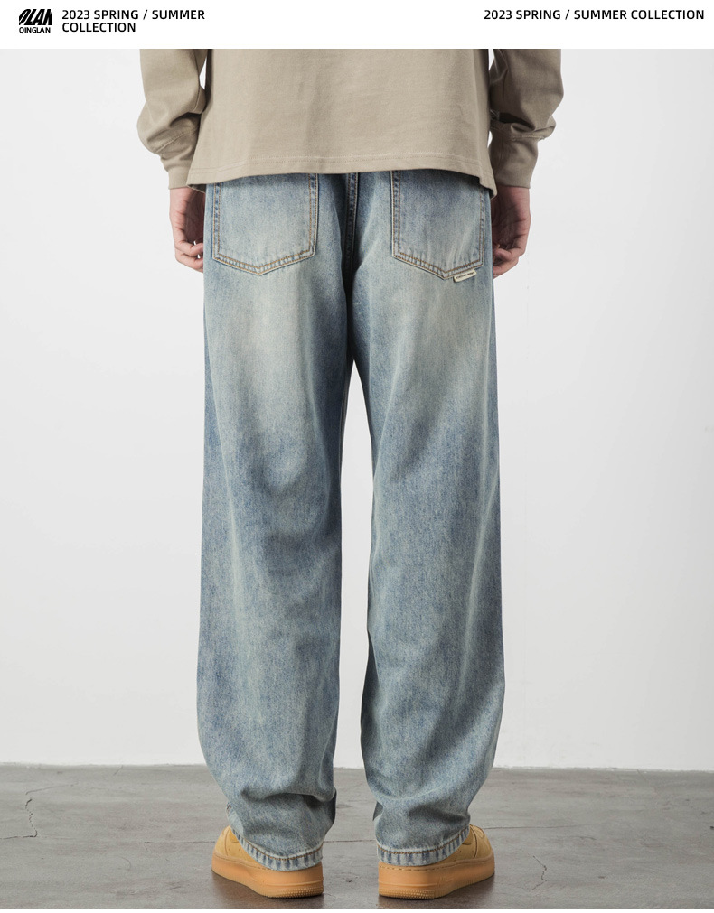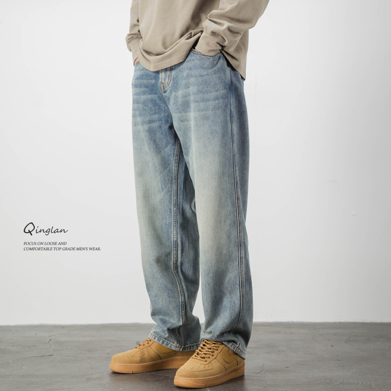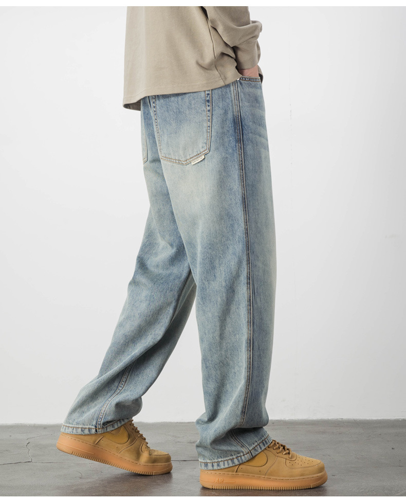 Lyocell Tencel 청바지 남자의 느슨한 미국 캐주얼 복고풍 스트레이트 와이드 다리 드레이프 긴 바지 여름 얇은스토어 가기