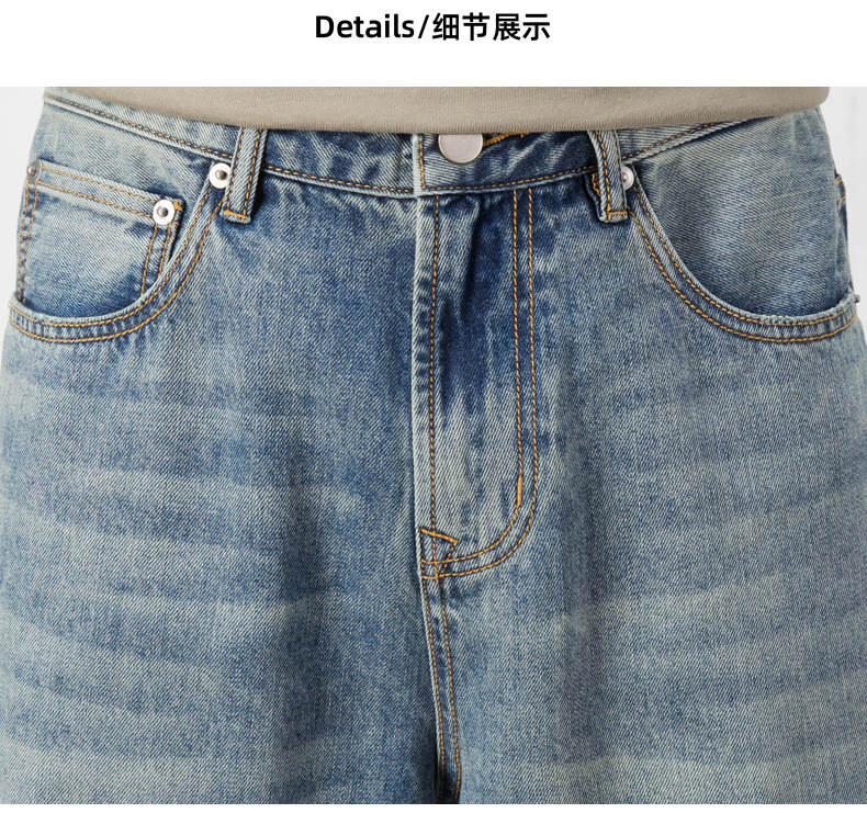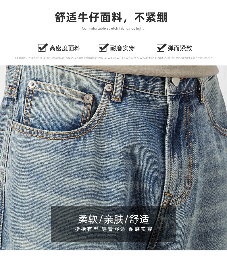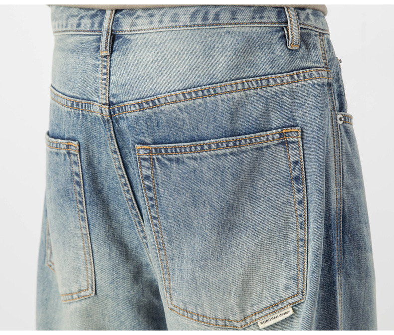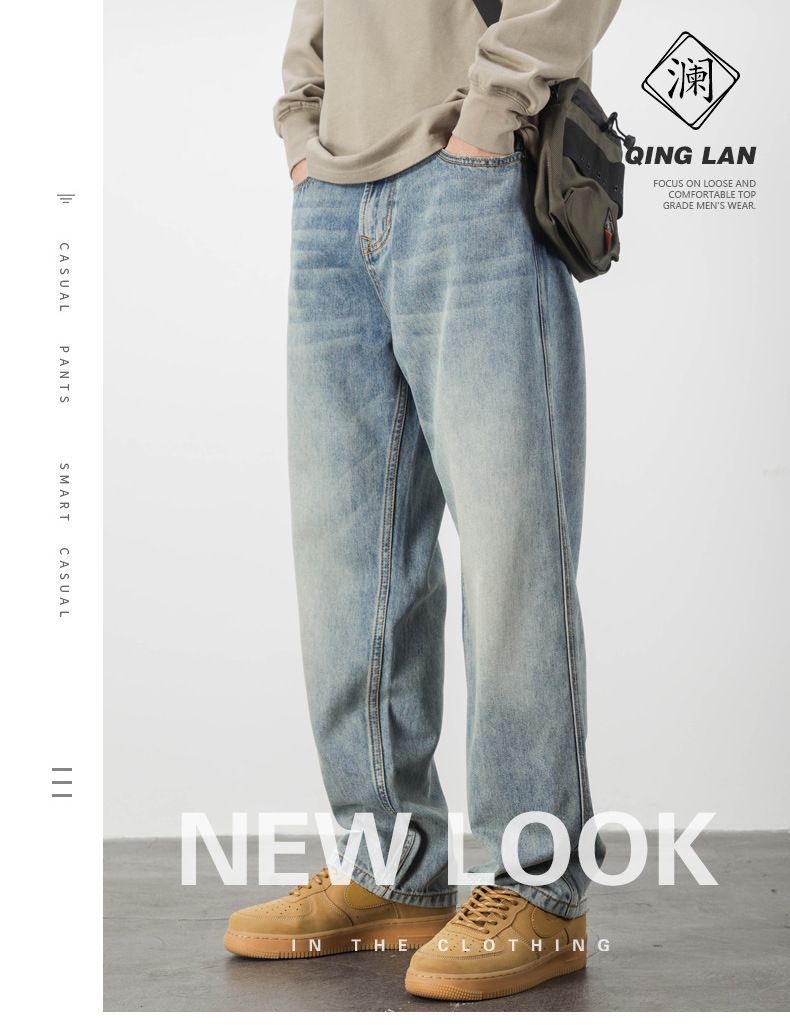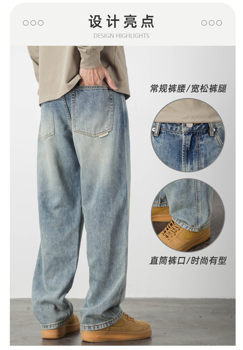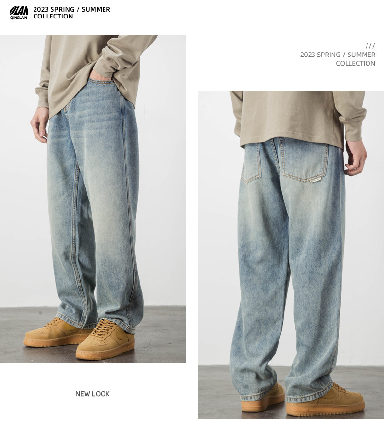 Lyocell Tencel 청바지 남자의 느슨한 미국 캐주얼 복고풍 스트레이트 와이드 다리 드레이프 긴 바지 여름 얇은스토어 가기