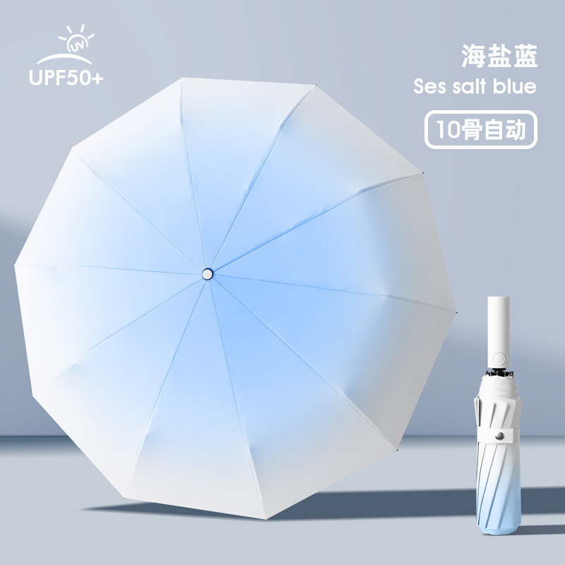 그라디언트 컬러 자동 접는 우산 도매 검정 고무 선 스크린 썬 우산 3 중 자외선 차단 태양 우산 이중 용도스토어 가기