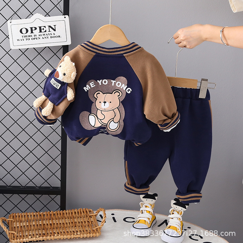 소년 '잘 생긴 세트 2023 새로운 서양식 아기 아동 의류 어린이 슬리브 3 종 3 차원 곰 야구 세트