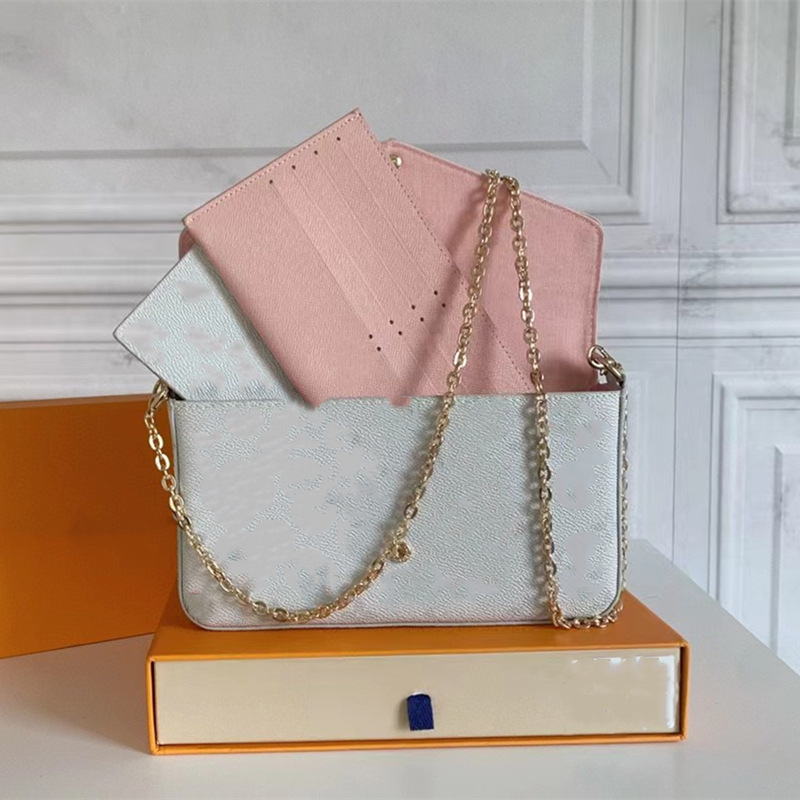 2023 새로운 당나귀 여성용 가방 오래 된 꽃 3 대 1 체인 가방 정품 가죽 손 봉투 어깨 크로스 바디 M61276