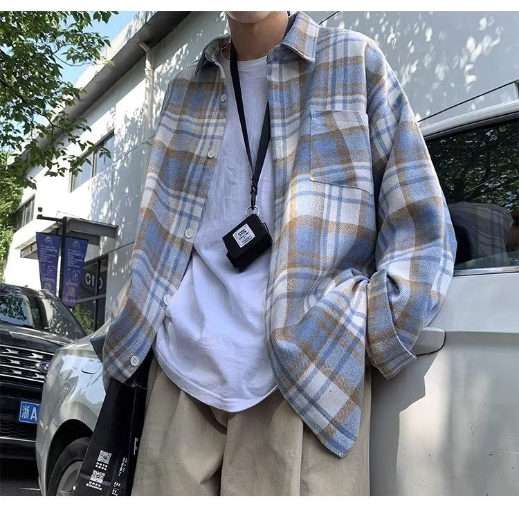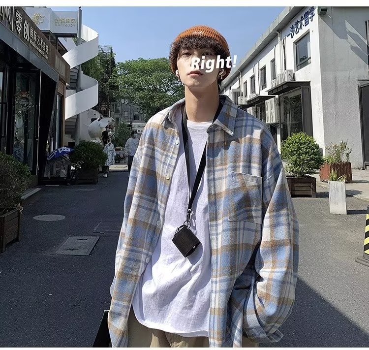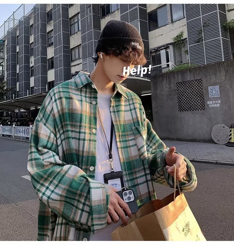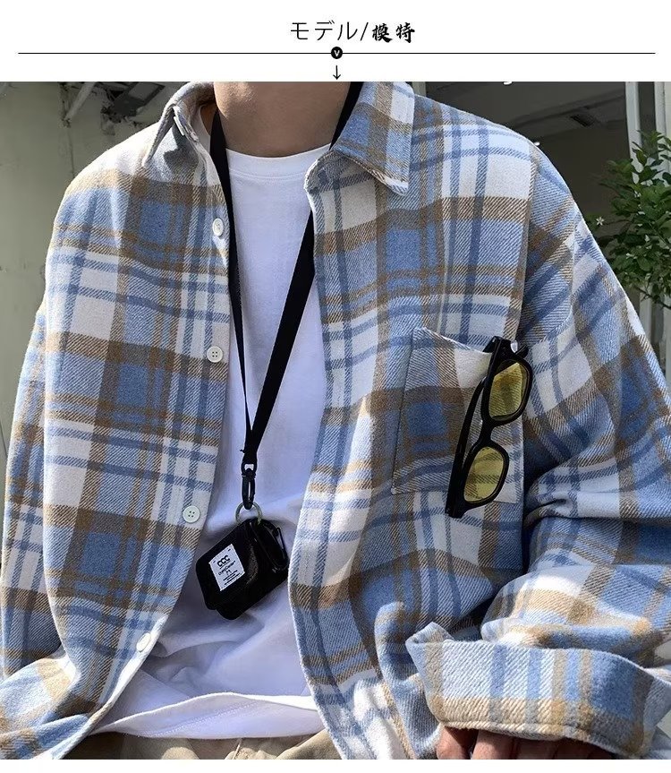 빈티지 아메리칸 스타일 격자 무늬 셔츠 남자의 봄과 가을 유행 브랜드 Plutton 잘 생긴 캐주얼 재킷 한국 유행 모직 재킷스토어 가기