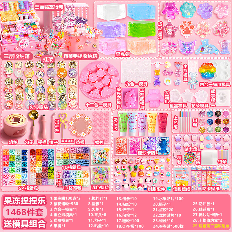 젤리 왁스 핀치 르 DIY 소재 패키지 화재 페인트 씰 소녀 구 카드 압축 수제 고양이 발 장난감 세트