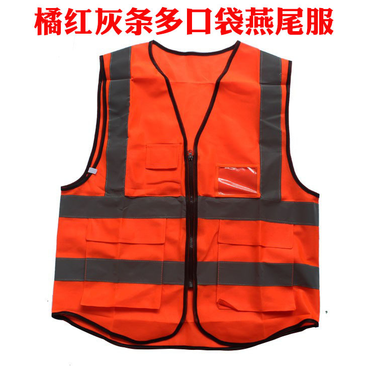 • 두꺼운 멀티 포켓 턱시도 오렌지 그레이 스트립 * 반사 스트립 * 반사 조끼 * 프리 사이즈
