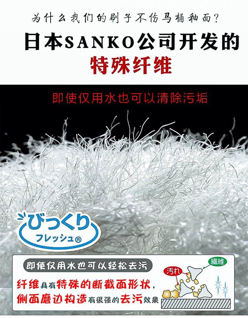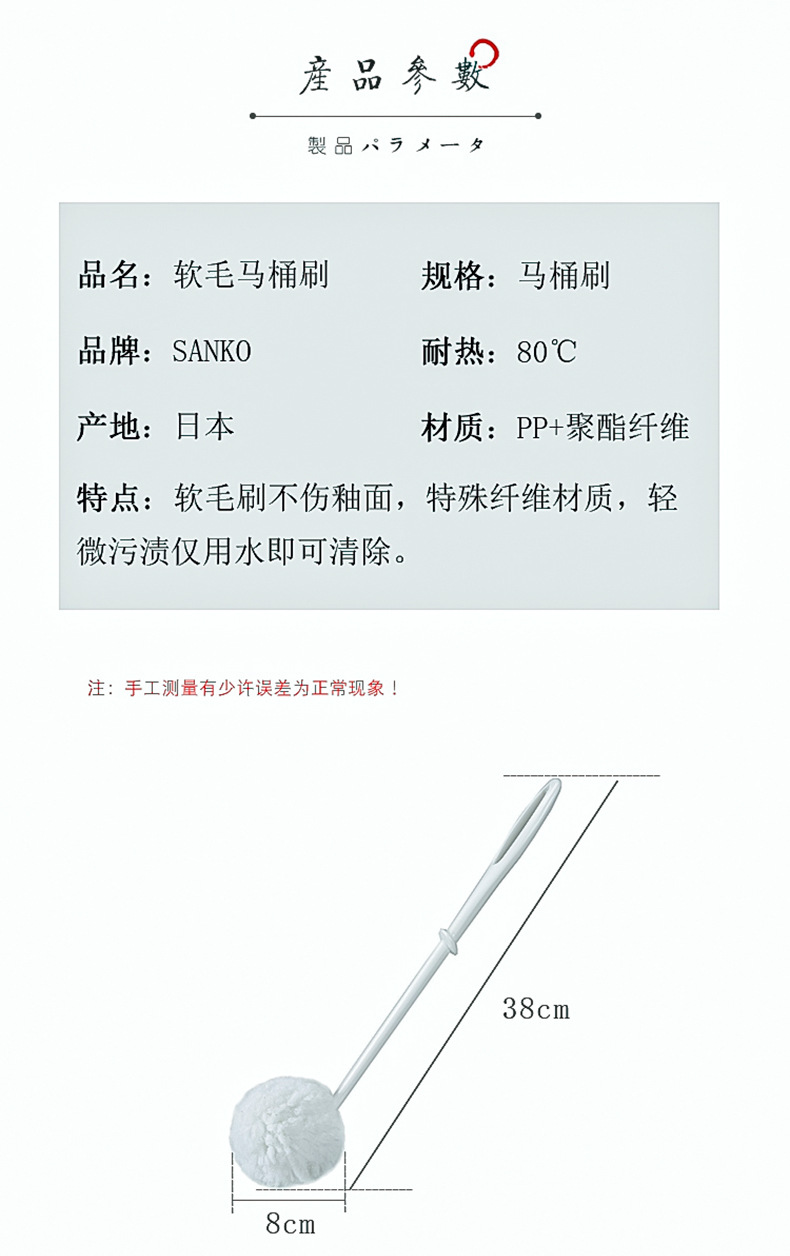 일본산 산코 부드러운 모의 변기솔, 유약 표면 손상 없이 가정용으로 사용 가능, 사각지대 없이 청소하는 화장실 변기솔