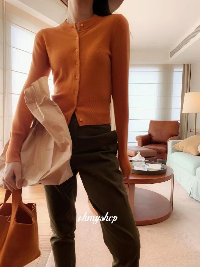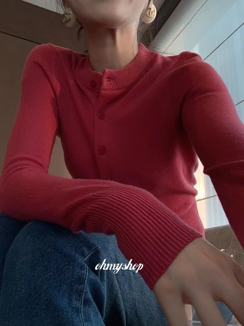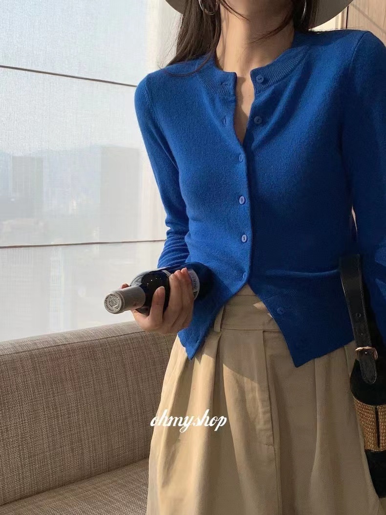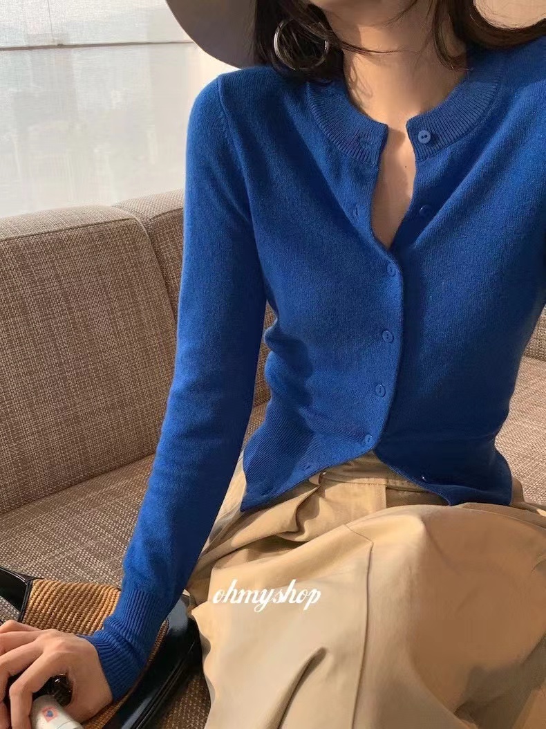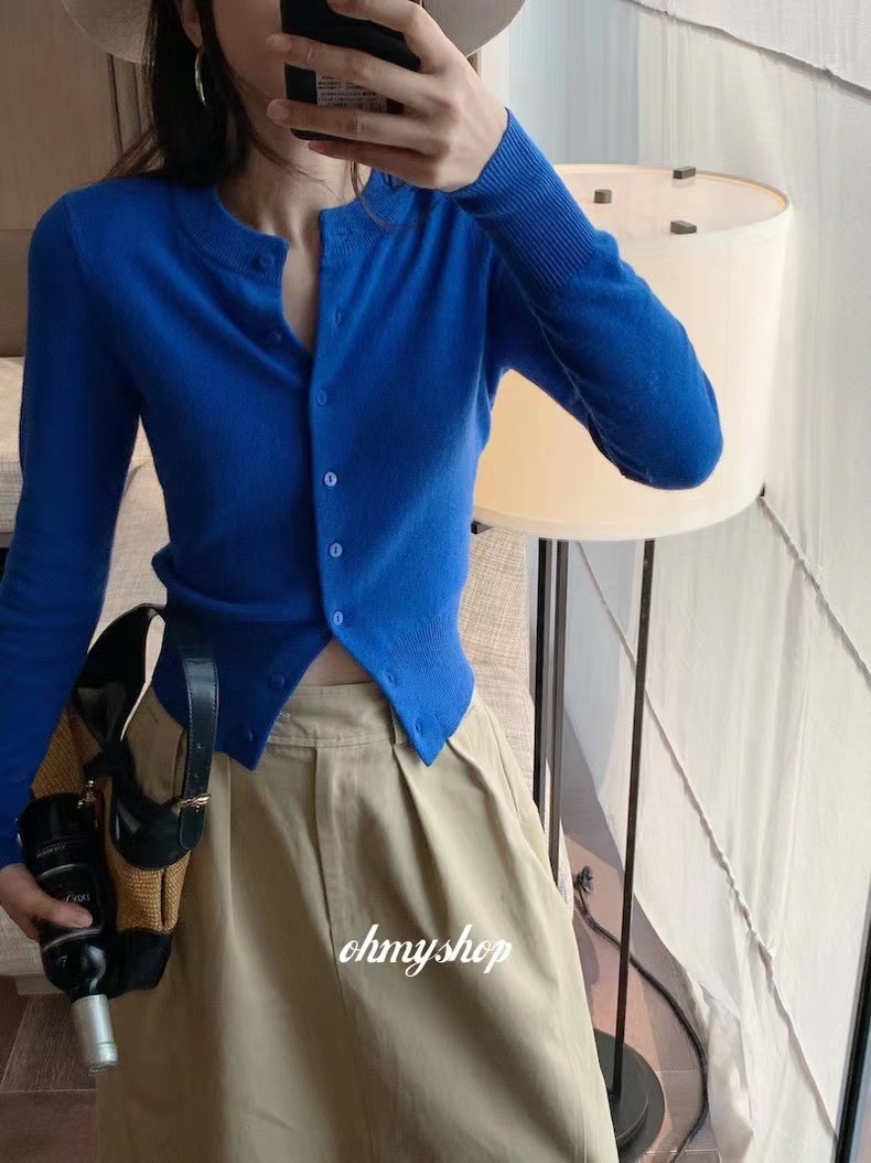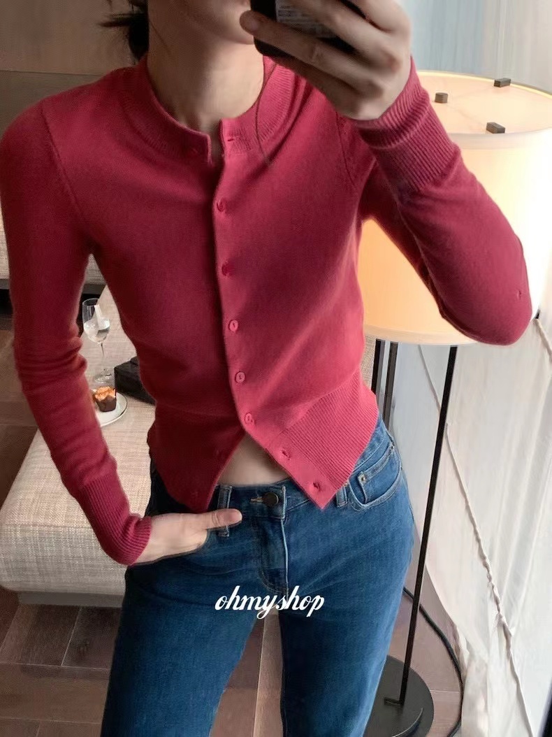 크루넥 울 니트 가디건 여성용 짧은 슬림핏 슬리밍 탑 긴팔 단색 스웨터 이른 가을 베이스 울 스웨터스토어 가기