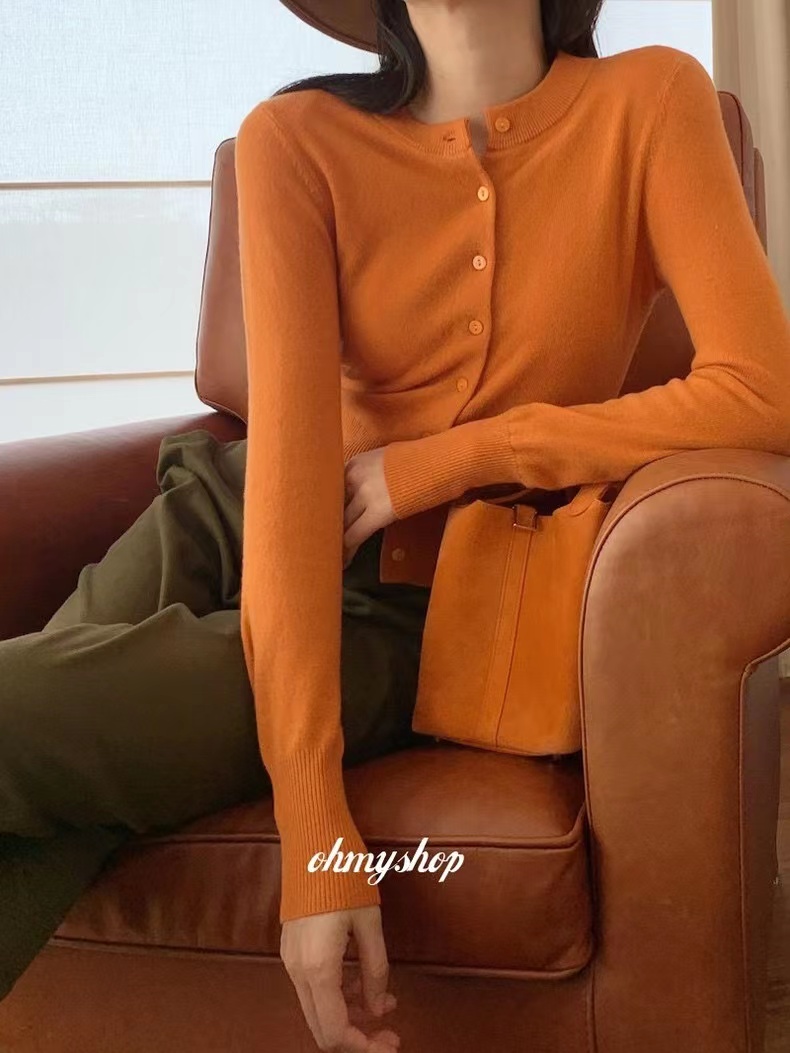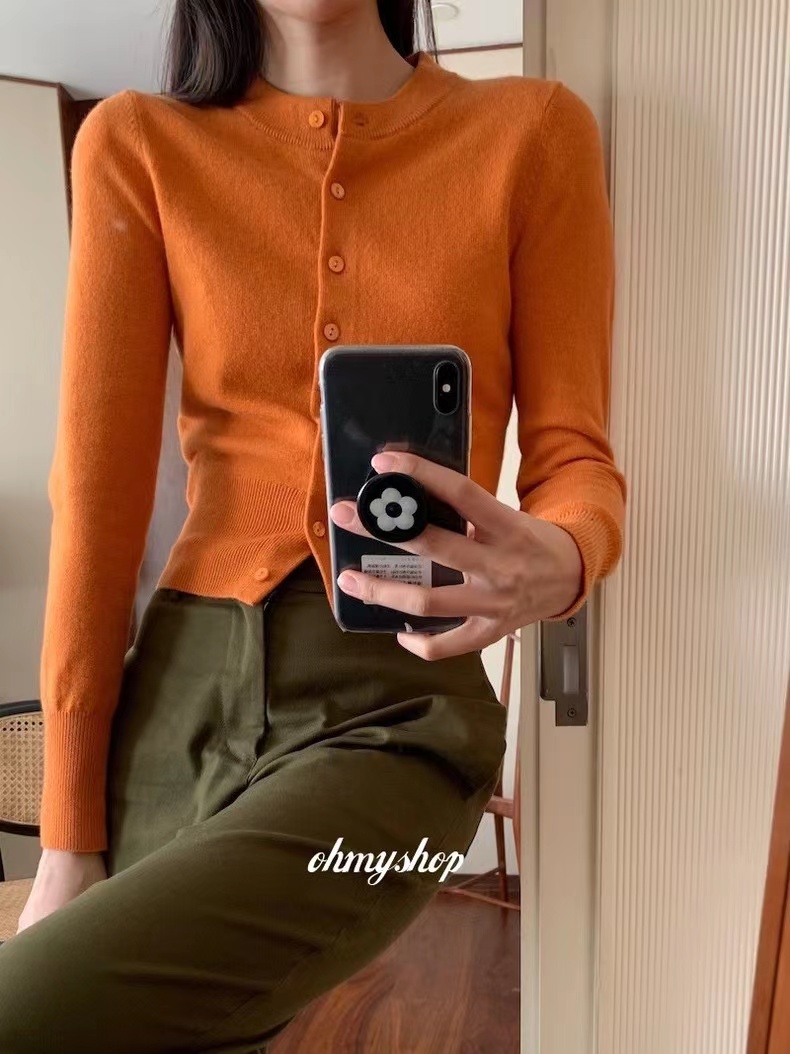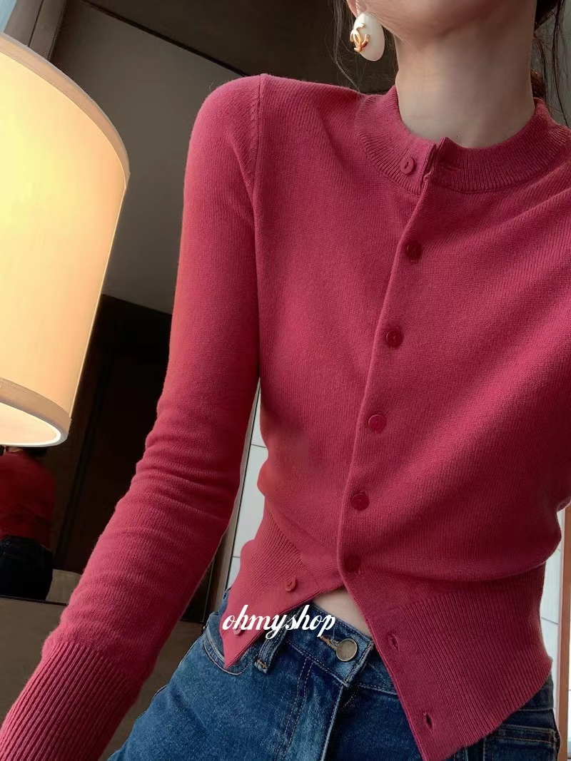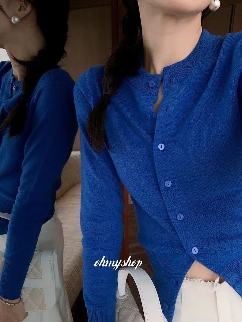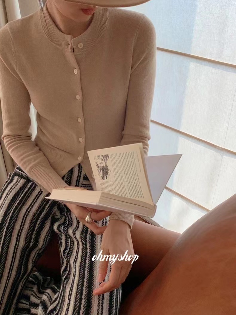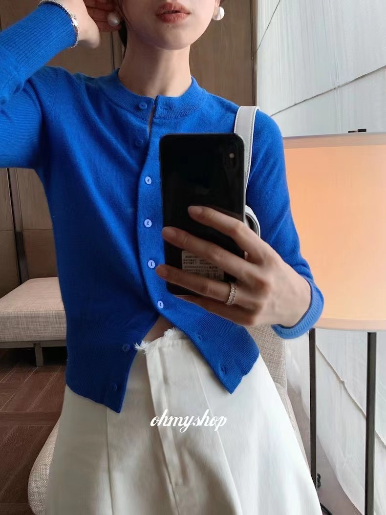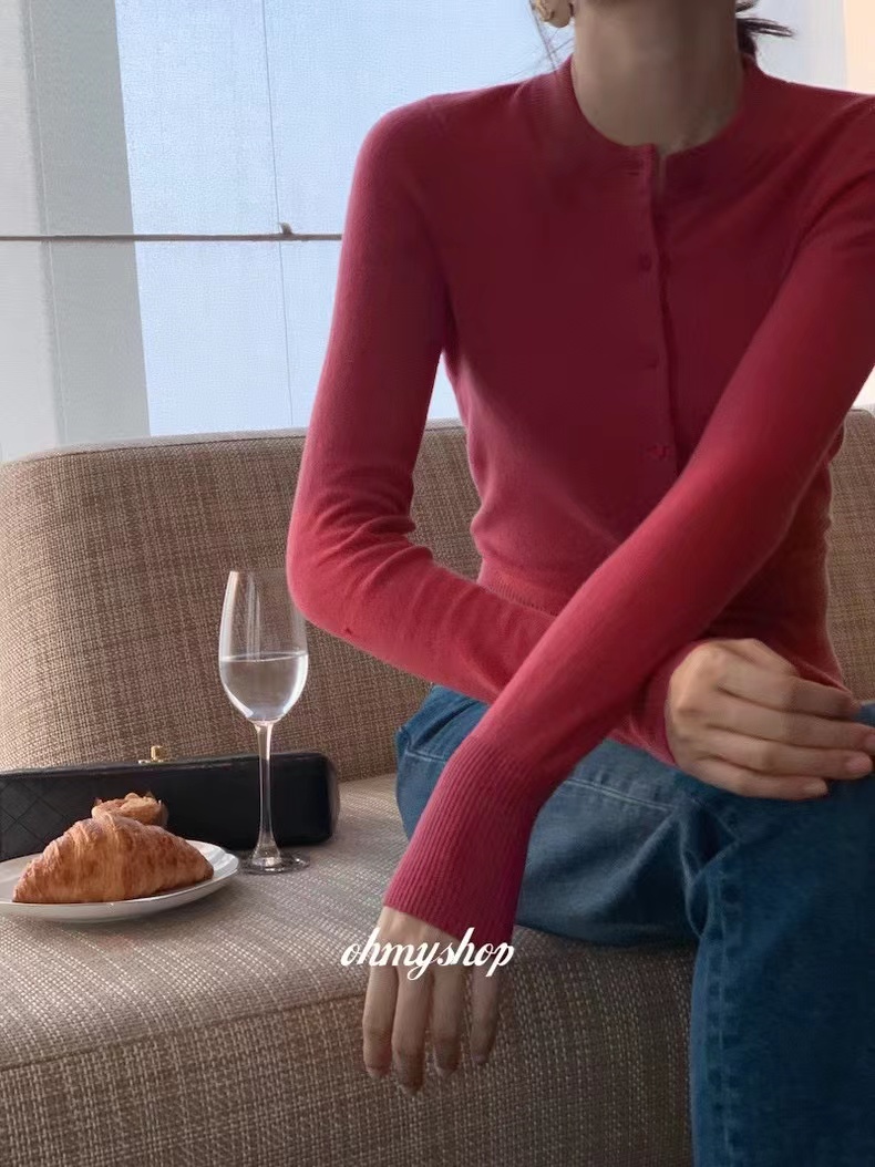 크루넥 울 니트 가디건 여성용 짧은 슬림핏 슬리밍 탑 긴팔 단색 스웨터 이른 가을 베이스 울 스웨터스토어 가기