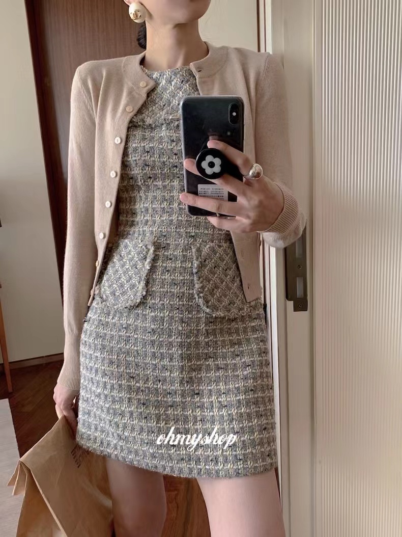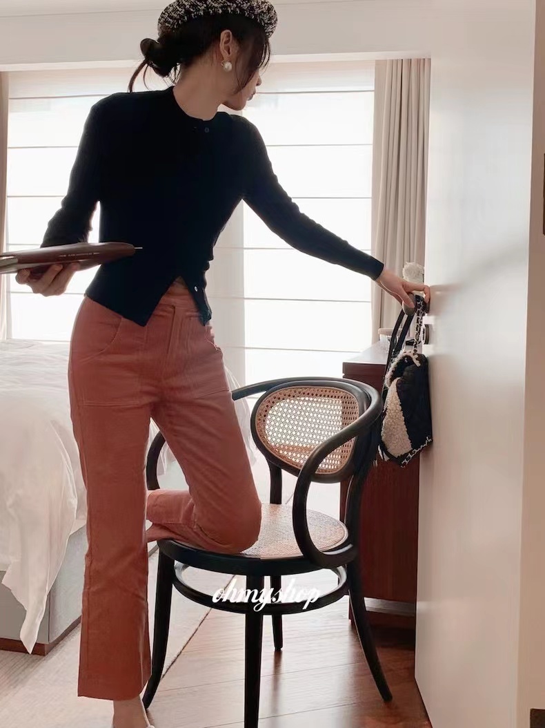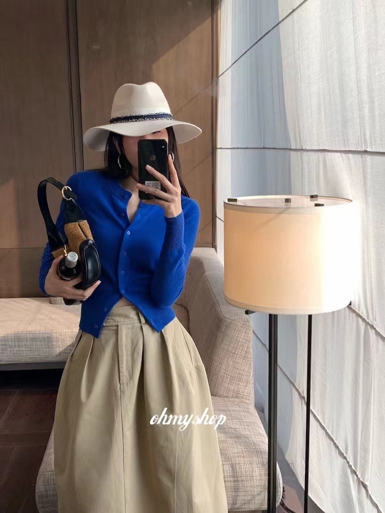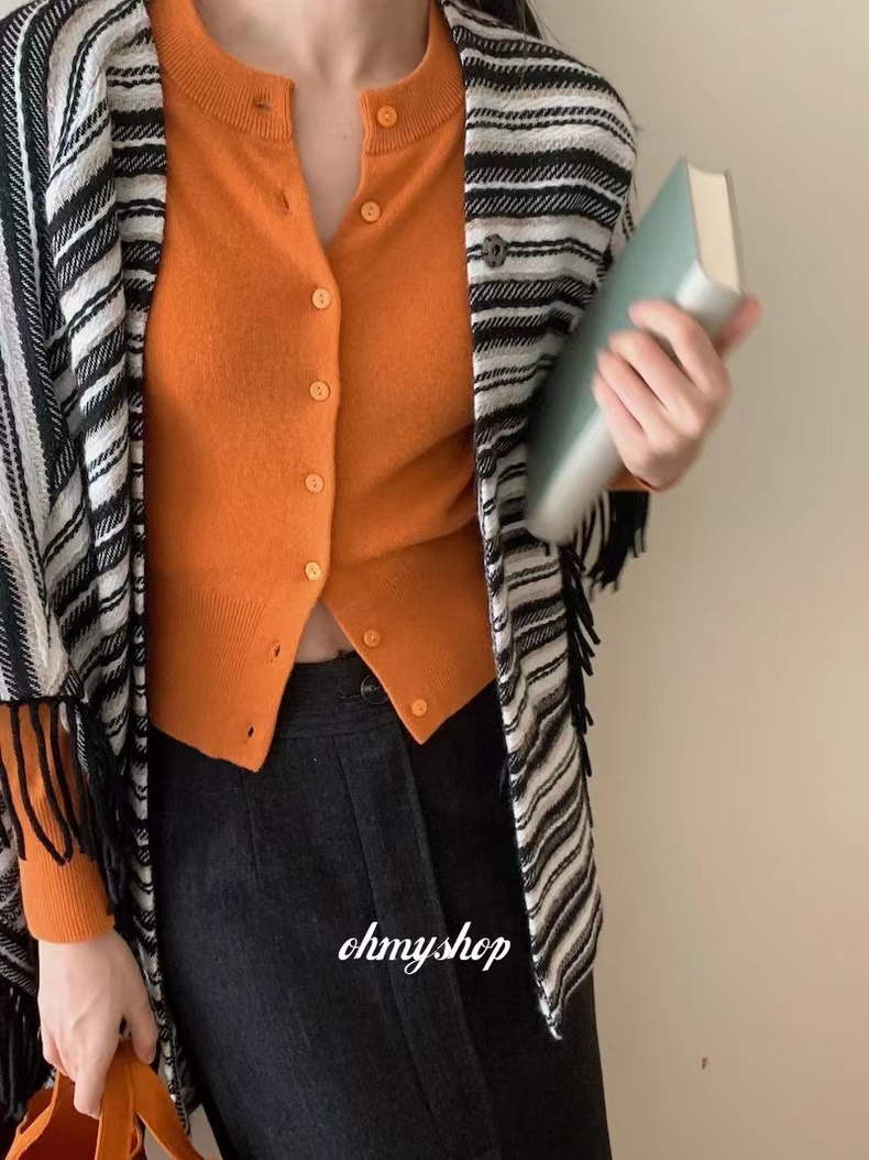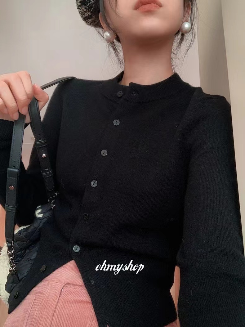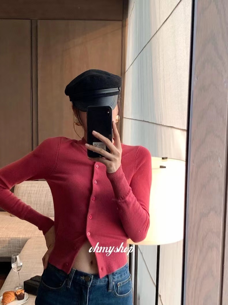 크루넥 울 니트 가디건 여성용 짧은 슬림핏 슬리밍 탑 긴팔 단색 스웨터 이른 가을 베이스 울 스웨터스토어 가기