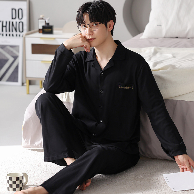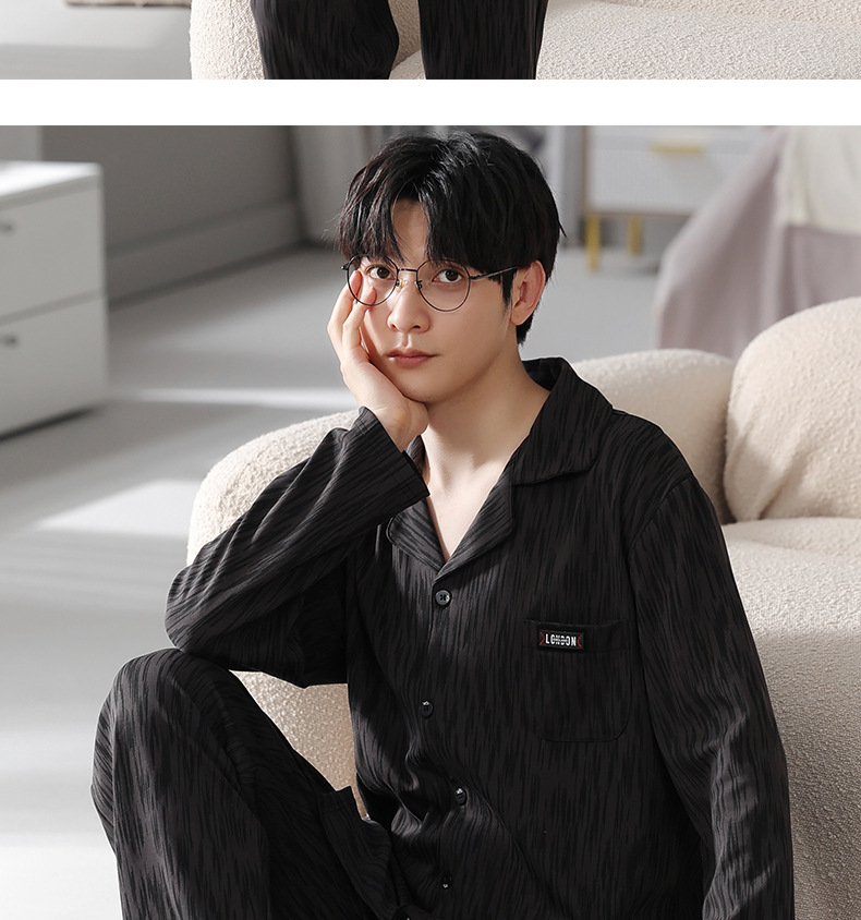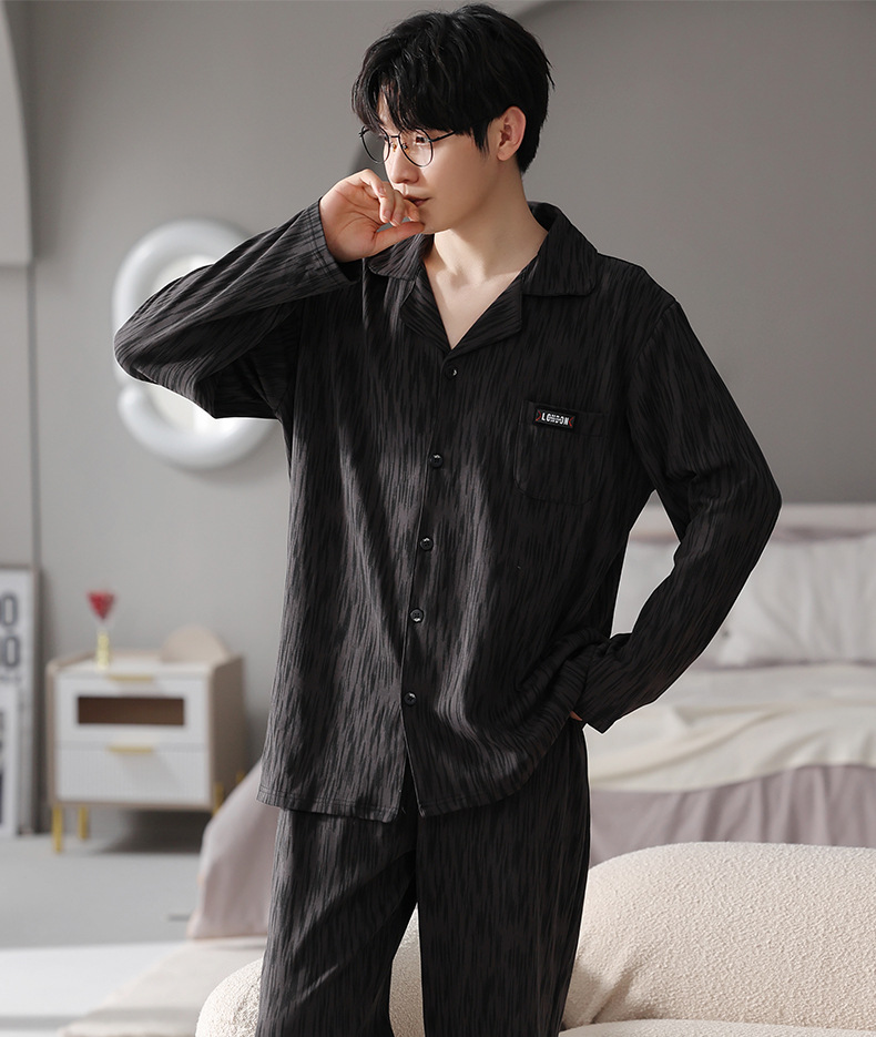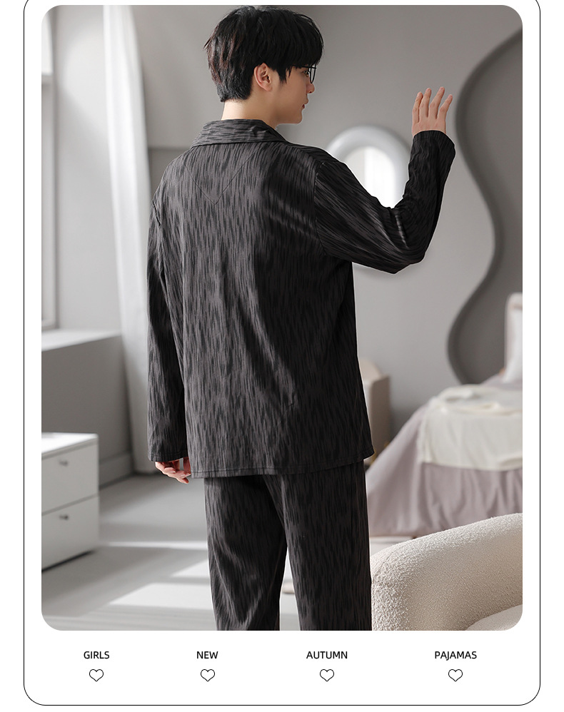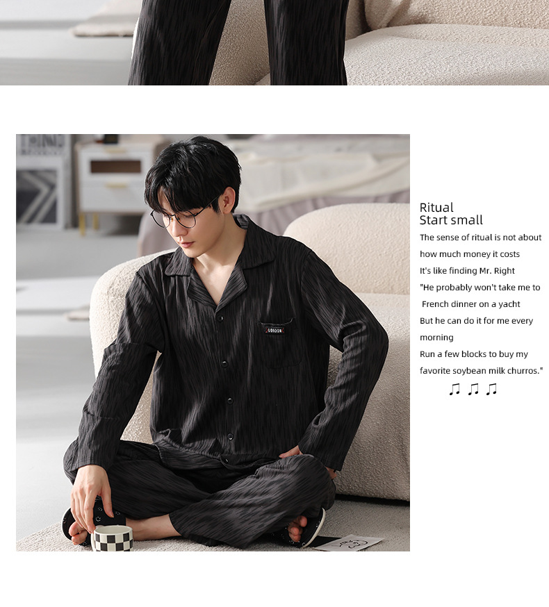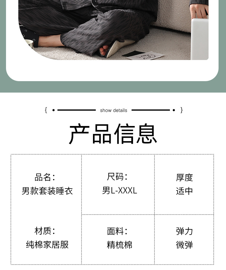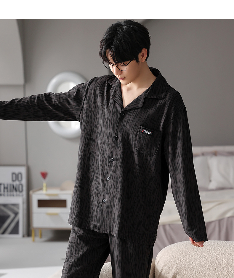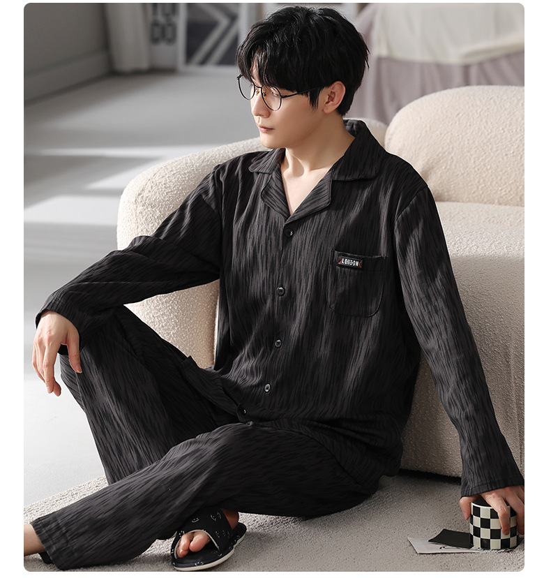 남자의 잠옷 봄과 가을 시원한 면 긴 소매 얇은 2023 새로운 온라인 연예인 라이브 폭발 줄무늬 플러스 사이즈 가정 옷스토어 가기