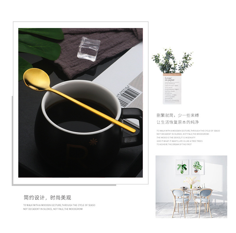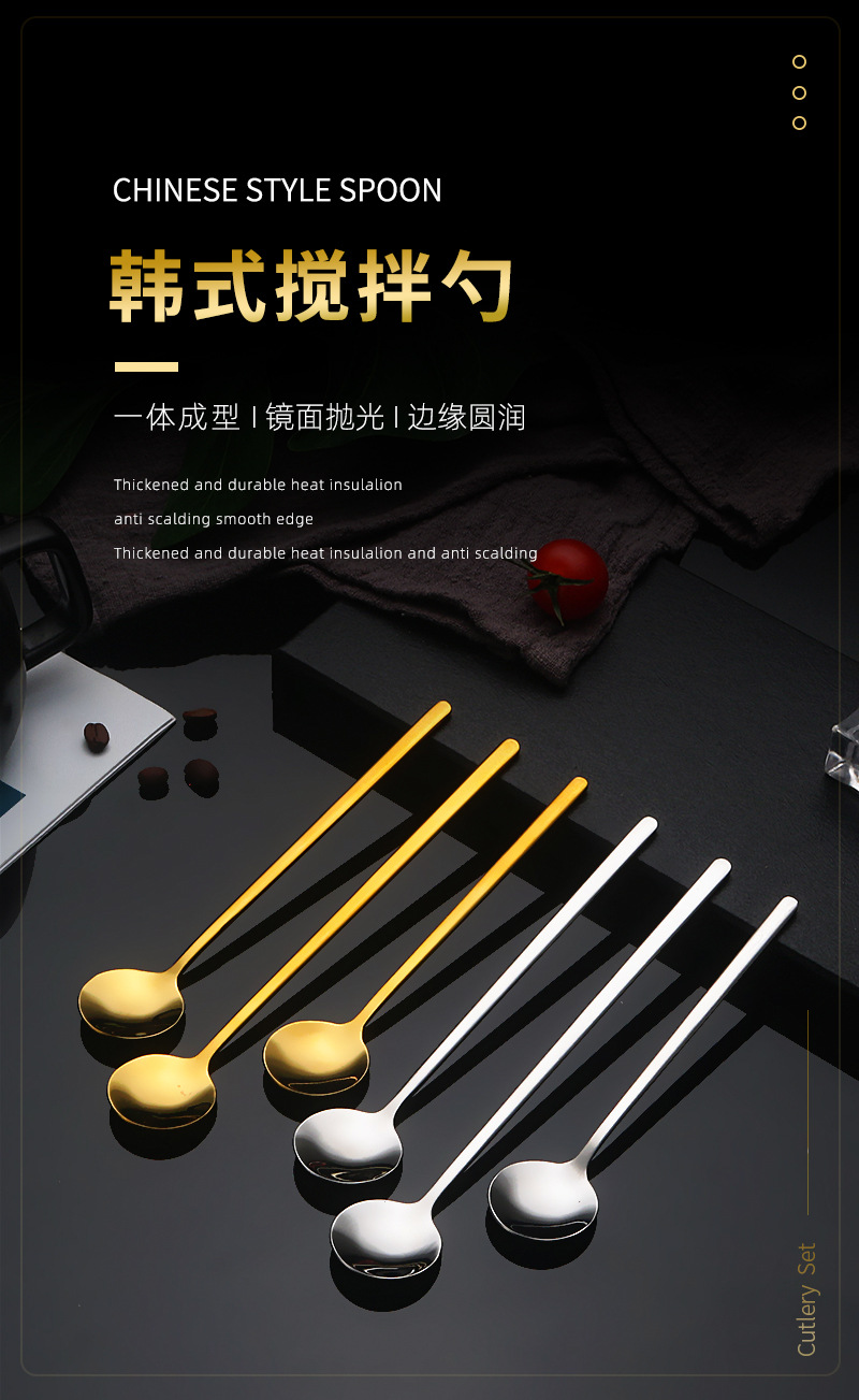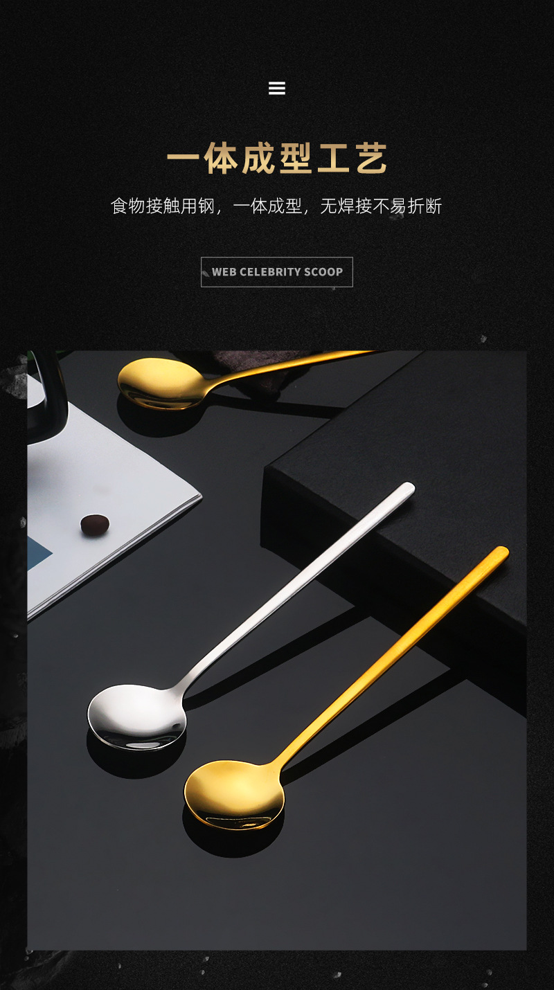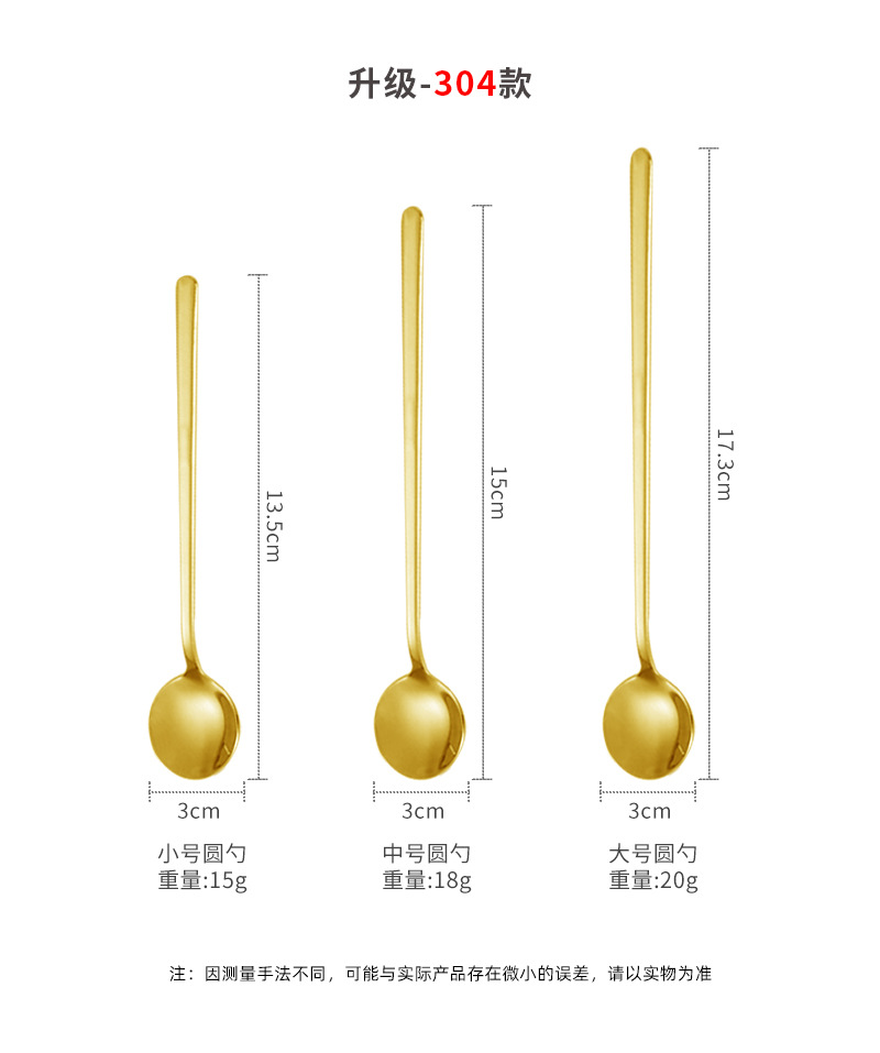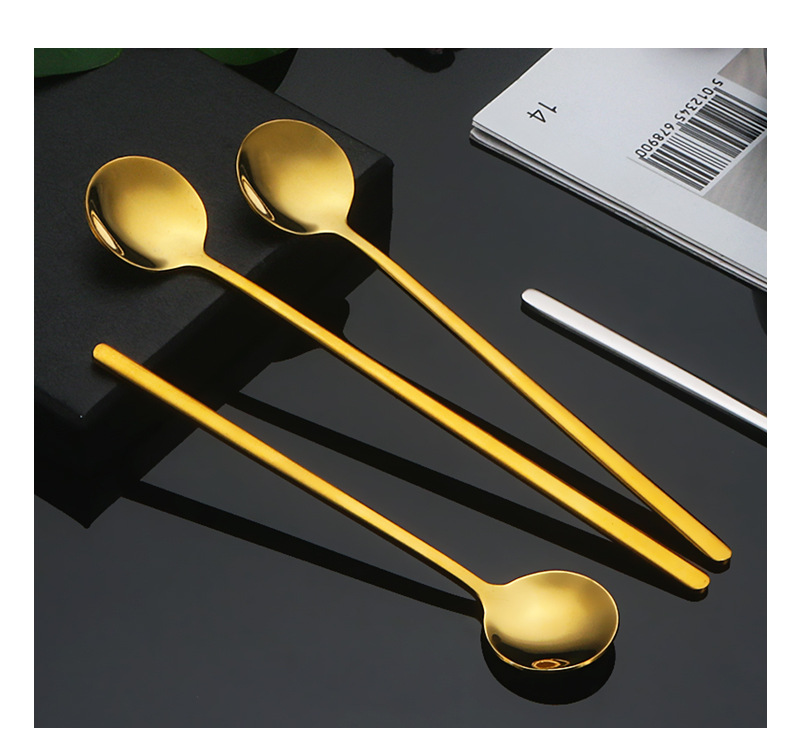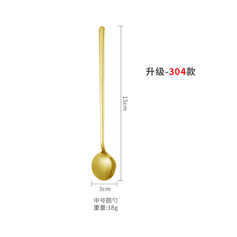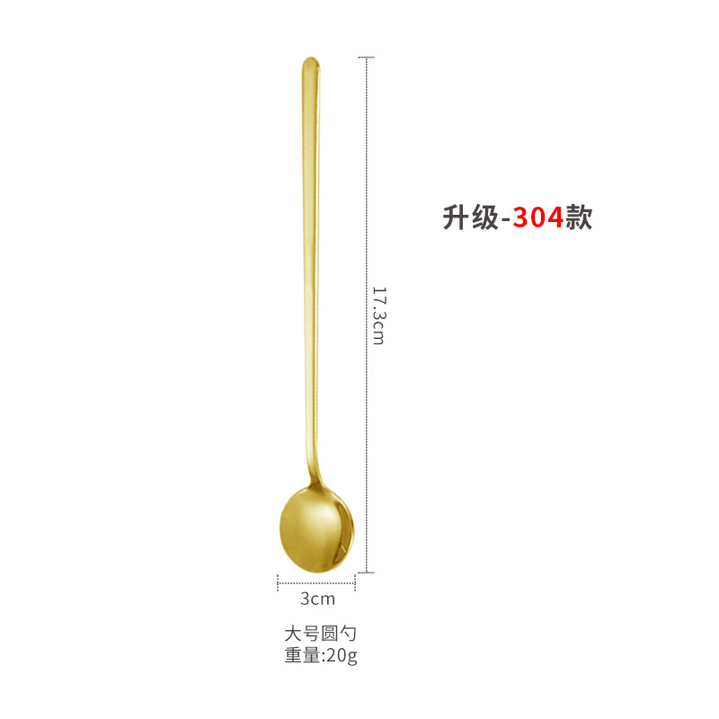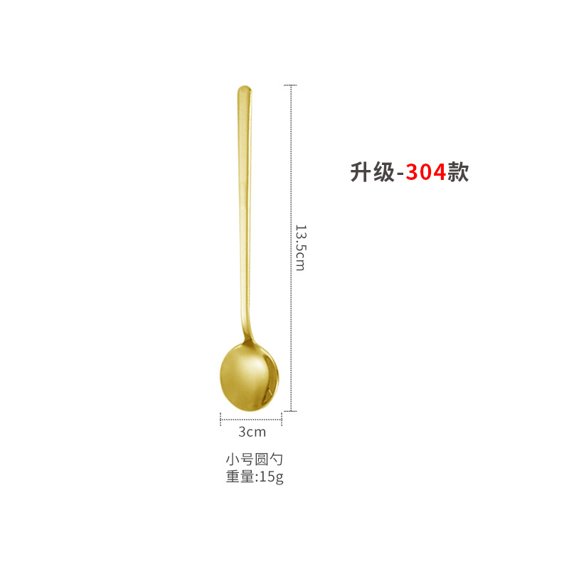 304 스테인레스 스틸 작은 둥근 숟가락 긴 손잡이 절묘한 황금 커피 숟가락 혼합 숟가락 꿀 숟가락 가정용 둥근 숟가락