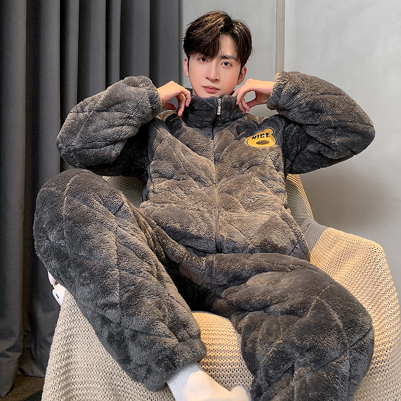 잠옷 남자 겨울 3 층 두꺼운 산호 양털 면화 따뜻한 여분의 두꺼운 남성 겨울 가정 의류 제조 업체 도매스토어 가기
